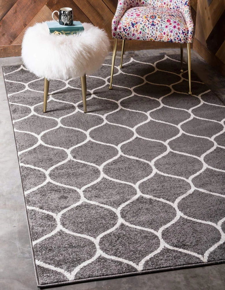 The Trellis Frieze Collection is a geometry lover’s dream. With shapes intertwining and connecting, you can be sure that your rug will be a showstopper. A myriad of color options on different patterns will allow you to find what you need to seamlessly coordinate and complement the color scheme in your home. Perfect Size - This area rug comes in many sizes 5x8, 9x12, 8x10 and other popular sizes. It is ideal for any room like the Living Room, Bedroom, & Kitchen. Match all sizes from Small Area Rugs to Large Area Rugs in this amazing trellis pattern area rug. Easy to Clean - A simple vacuum to clean this rug on a regular schedule along with spot cleaning for those spills. With our unique formula, this area rug is stain, fade, & spill resistant. Plush low pile fibers do not trap dirt & debris. Perfect for Kids - This area rug is designed to be soft and comfortable for kids and family. This area rug is perfect for a kid's room or nursery. The plush fibers and contemporary colors will make this area rug the centerpiece of your room. Durable & Pet Friendly - This area rug is perfect for Pets & high traffic areas such as a living room & Entryway. The synthetic fibers have been tested to withstand hundreds of hours of continual use. Style & Color - This geometric pattern area rug is offered in a variety of styles to fit any boho, farmhouse, or modern design. This area rug is offered in a vast range of colors. Choose from the wide selection for the perfect size & color for your home.