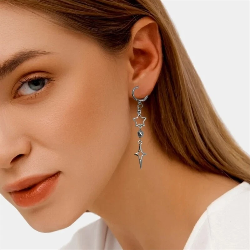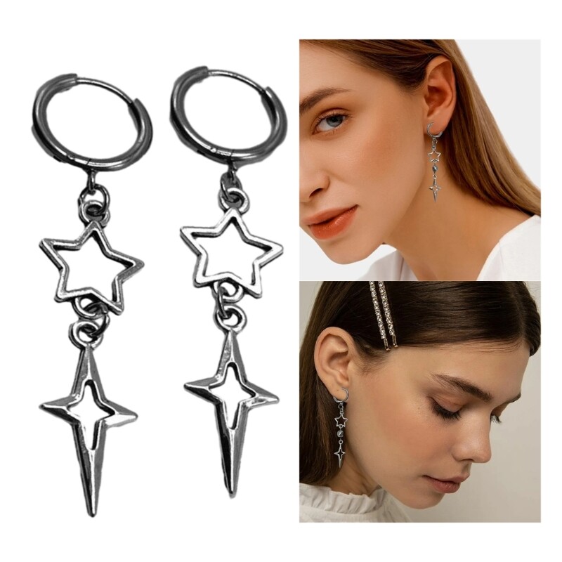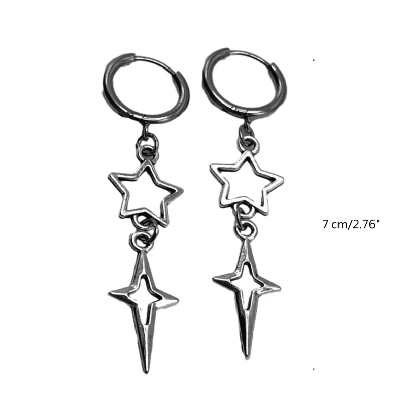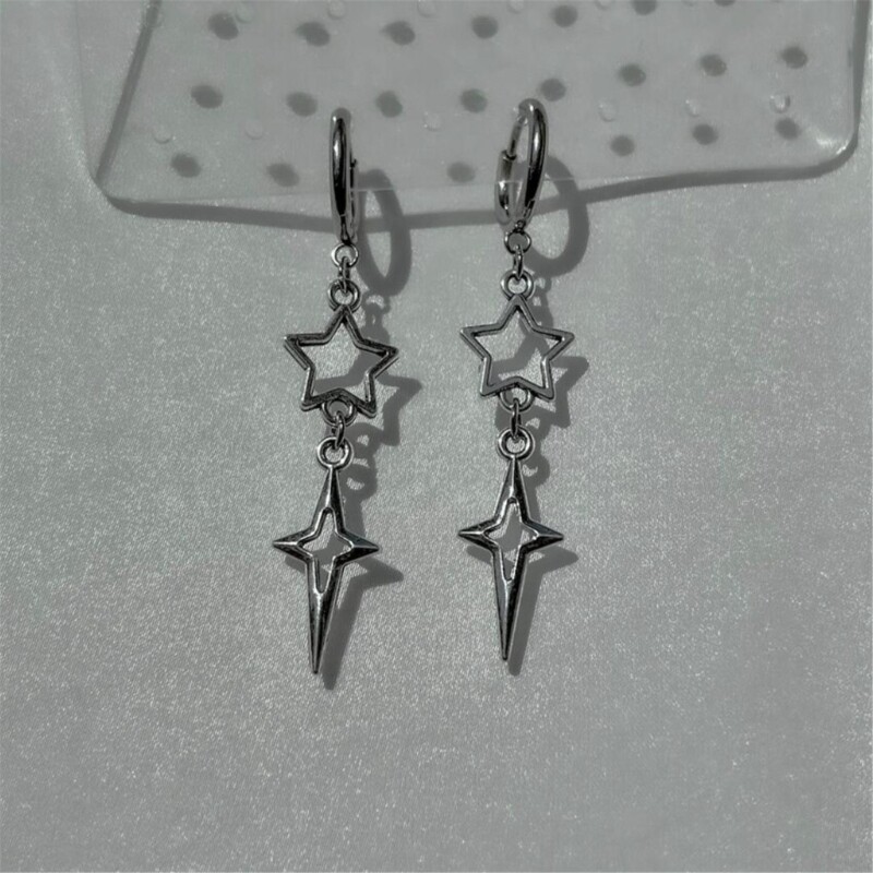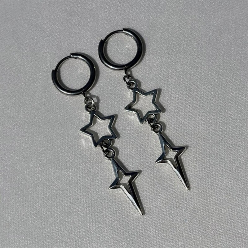 Features: and high Make a statement with these punk star earrings. The hollow heart and star drop ear hooks add a unique touch to any look. Crafted from high alloy, these silver colored earrings are durable and to tarnish. They will maintain their edgy appeal for a long time. Designed for women, ladies, girls, and even children, these earrings are suitable for anyone who wants to rock a trendy and fashionable look. Wear these versatile earrings on any occasion, whether it's a casual outing or a special gathering. They elevates your and add edgy twist. your unique with these eye catching earrings. They make a for yourself or someone special, allowing you to showcase your individuality. Specifications: Alloy Size: approx.7cm/2.76in Color: As the pictures shown Quantity: 1 Pair Package Includes: 1 Pair x Earrings note: Please allow 0-1cm error due to manual measurement. please make sure you do not mind before you bid. Due to difference between different monitors, the picture may not reflect the actual color of the item.