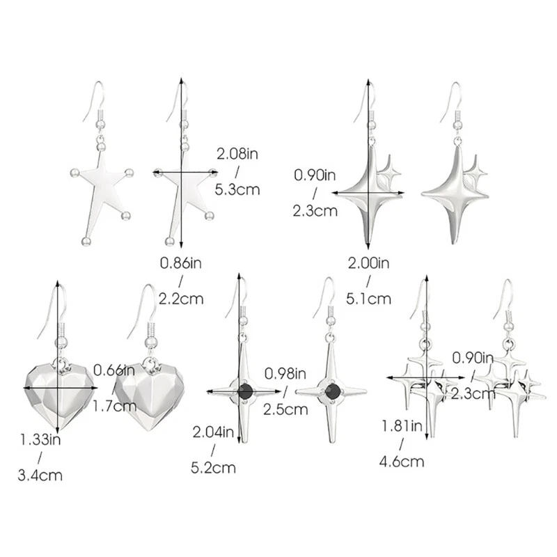 Trendy Dangle Earrings with Star Heart Cross Pendant Designs