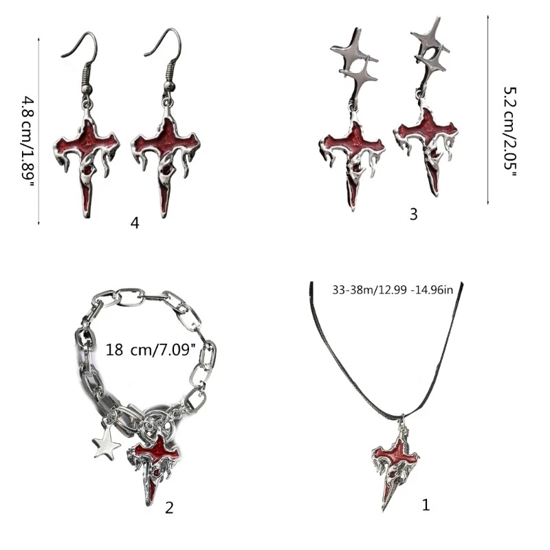 This gothic set is absolutely stunning! The intricate cross and snake chain design adds a bold, edgy vibe to any outfit. The high-quality alloy feels durable, and the vintage charm makes it perfect for Halloween or everyday wear. Love how versatile it is—works as a clavicle chain, bangle, or earrings. The dark, mysterious aesthetic is eye-catching without being over the top. A must-have for anyone who loves unique, statement jewelry!