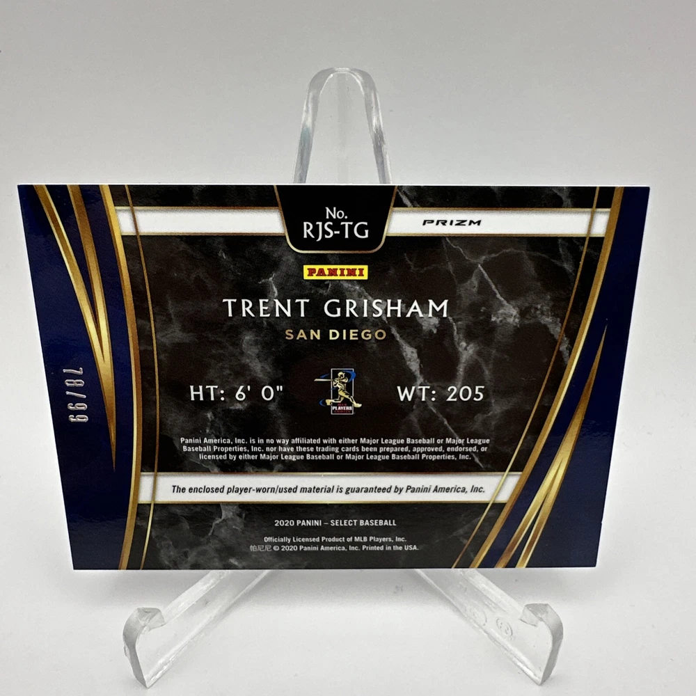 HERE IS ANOTHER GEM MINED FROM DC'S COMIC CAVE! TRUSTED EBAY SELLER SINCE 1999 WHERE BUYERS CAN PURCHASE WITH CONFIDENCE! 2020 PANINI SELECT TRENT GRISHAM JUMBO JERSEY TRI-COLOR PRIZM RC NUMBERED 78/99 !! COMES IN NRMT OR BETTER CONDITION AS SEEN IN THE PICS.