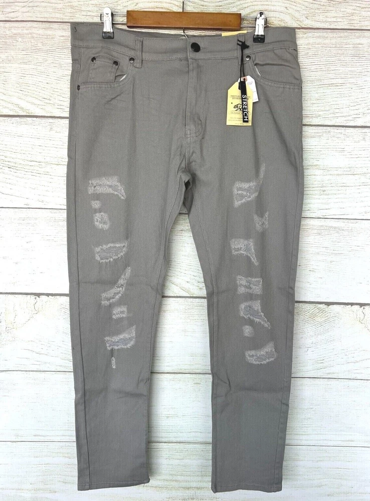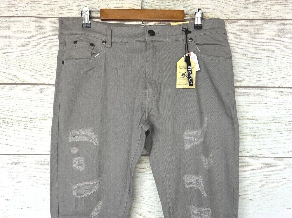 Trestles Thin Jeans Mens 36X32 Grey Distressed Canvas Style Stretch Skinny New