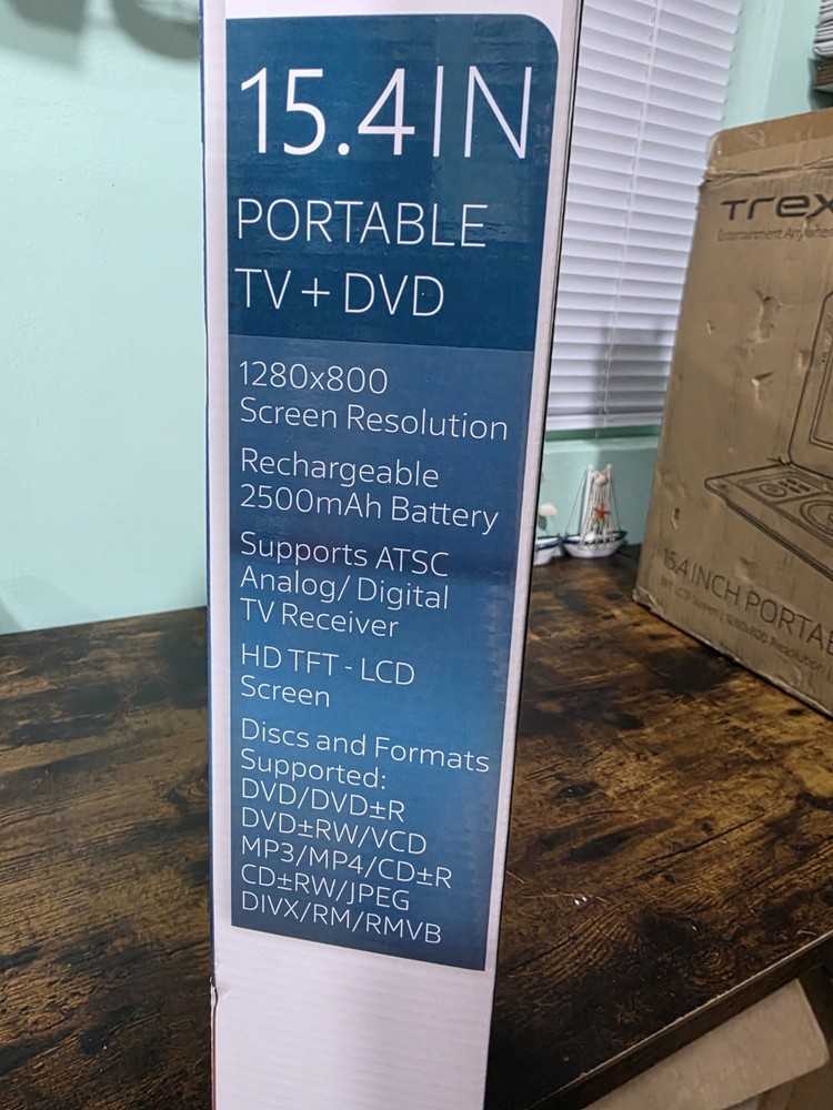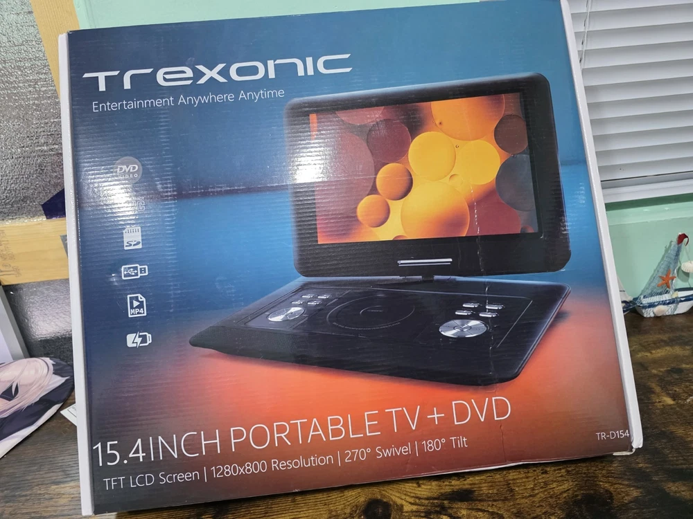 The Trexonic Portable 15.4 Inch TV+DVD Player in black features a compact LED screen that offers crystal-clear visuals. With connectivity options like USB, HD, and AV, this portable device allows you to easily connect and view your favorite media on the go. Perfect for watching movies or TV shows while traveling or on-the-move, this versatile device is a convenient and reliable choice for entertainment.
