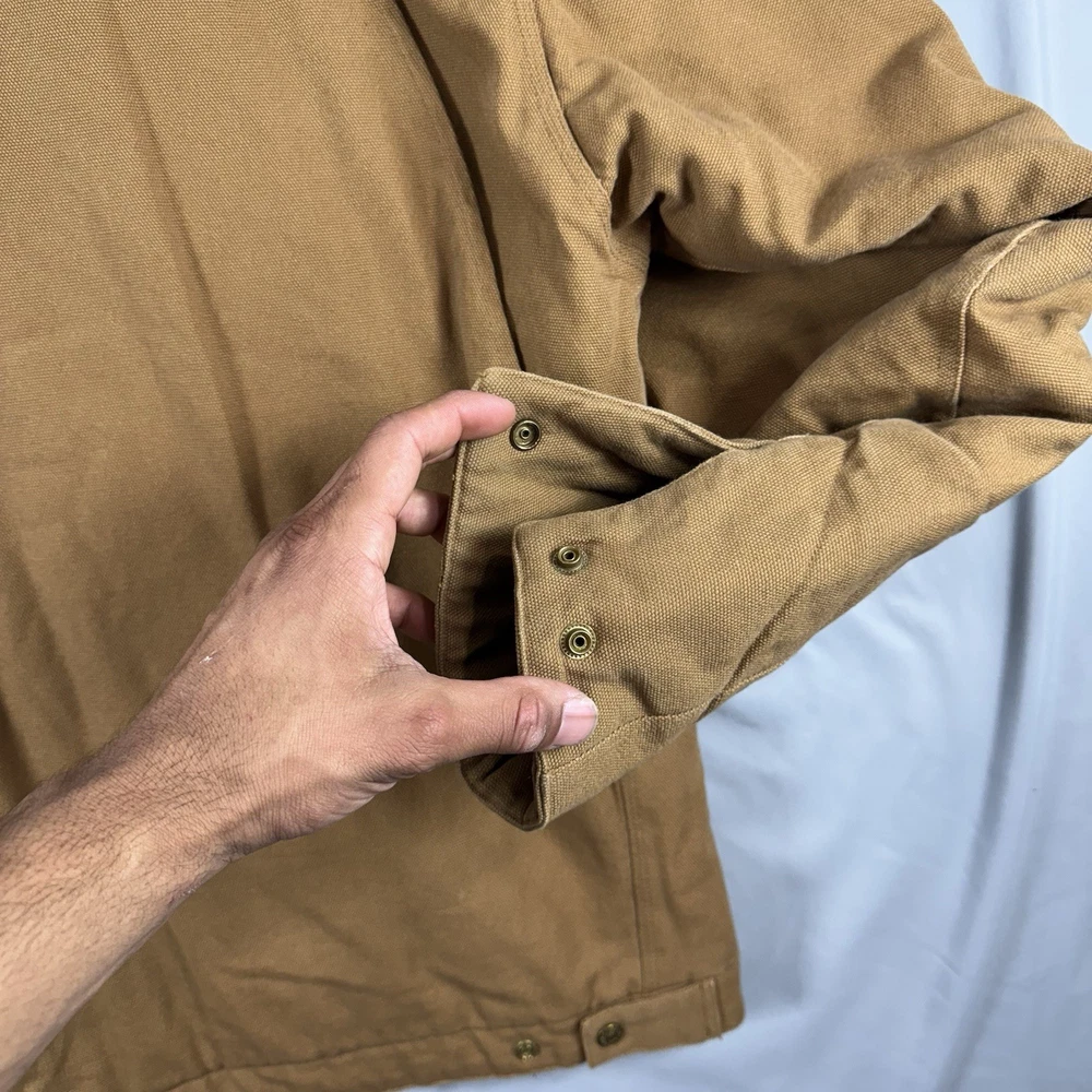 Carhartt Reworked Mens Sherpa-Lined Hooded Canvas Jacket Large Full Zip with Patch