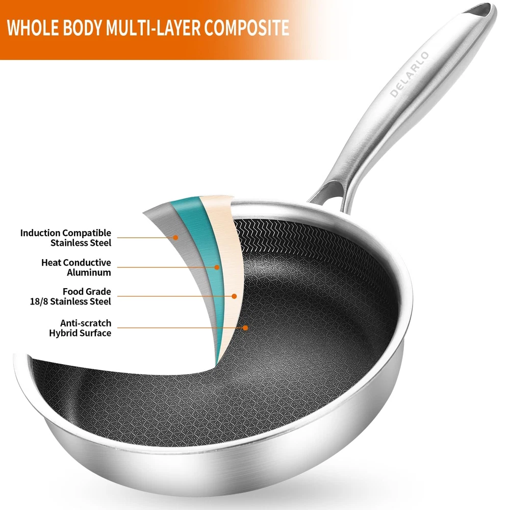 Whole body Tri-Ply Stainless Steel 6inch Hybrid Frying Pan 【HEALTHY MATERIAL】The Small Frying Pan Is Made of Triply Stainless Steel. The 6 inch Small Egg Frying Pan is Corrosion-Proof, and Won't Interact With Food, Thus Ensuring Healthy Cooking. Oven Safe to 600℉ 【Non-Stick Coverting】Our 6" Frying Pan are BPA-Free, Lead & Cadmium-Free, And Heat Resistant For Long-Lasting Excellent Cooking Results And Great Convenience for The Cooking and Cleaning Process 【Fast & Even Heating】The Entire Mini Egg Pan Is All Tri-Ply Bonded Construction Ensures Optimal Heat Distribution For Fast Even Heating, and Energy Saving, Will Spend 20% Gas Or Electricity Less That You Have Spend in Cooking Before 【Suitable For All Stoves】The Egg Skillet Works On All Stove Tops, Including Induction, Gas, Electric, Halogen, Glass, And Ceramic. The High-Quality Stainless Steel And The Aluminum Core Make It Dishwasher-Safe And Oven-Safe Up To 600°F