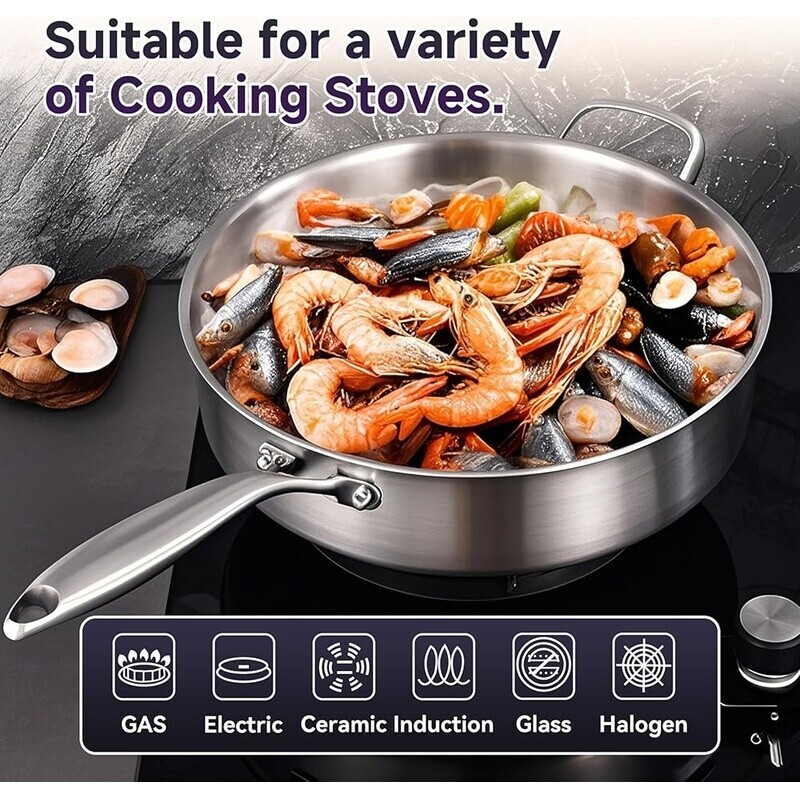 You may also like Cast Iron Dutch Oven 7.3Qt Enameled Cookware Oven Safe Heat Retention Easy Clean 52.3 USD 56.24 USD Free shipping 7% off Stainless Steel Manual Frozen Meat Slicer Mutton Ham Beef Cutter Cutting Machine 23.99 USD 25.8 USD Free shipping 7% off 1X Metal Wallet Stainless Steel Credit Card Holder RFID Enclosed Protective Case 5.49 USD 5.78 USD Free shipping 5% off Kitchen Poultry Shears, Heavy Duty Stainless Steel Bone Scissors for Meat & Fish 11.12 USD 11.71 USD Free shipping 5% off Probiotic 50 Extra Strength Prebiotic Vegetarian Capsules Digestive Health 30ct 27.44 USD 29.5 USD Free shipping 7% off Clear Stackable Storage Bin 72Qt W/ Secure Latch Ideal Home Organization New 9.97 USD 10.5 USD Free shipping 5% off Activity Garden Playhouse Babies Toddlers Learning Fun Multi-Activity Center New 106.72 USD 114.75 USD Free shipping 7% off Adhesive Rubber Feet Bumper Stops w/Nip Door Cupboard Drawer Cabinet Kitchen lot 4.67 USD 4.92 USD Free shipping 5% off Countertop Microwave Oven with ECO Mode, Easy One-Touch Buttons, 0.7 Cu Ft/700W 88.34 USD 94.99 USD Free shipping 7% off Anti-Mosquito Bug Bee Insect Head Net Hat Cap Sun Protection Fishing Hiking 4.75 USD 5.0 USD Free shipping 5% off Sneaker Stain Eraser Kit - Detergent Cleaner for Suede, Leather, and Rubber Shoe 4.78 USD 5.03 USD Free shipping 5% off Narrow Rolling Cart Storage Slim Trolley 4 Tier Metal Kitchen Organizer Wheels 45.33 USD 48.74 USD Free shipping 7% off About this item Tri-Ply Clad:Made with a high pure aluminum core bonded together with 2 layers of durable stainless steel, excellent durability and even heat distribution,saved energy more than 20% Food Grade Suface:Highly polished 18/8 food grade stainless-steel cooking surface with starburst,plus won’t adverse react with food Suitable for All Stoves:Works on all cook stovetops, include induction stove,to make sure you can use the pan anywhere Cool Handle Grip:Screw fixation detachable convenient storage stainless-steel long handle cool to the touch, ensuring safe and comfortable handling while cooking Dishwaher and Oven Safe:The high quality tri-ply clad make the pan dishwasher-safe and oven-safe up to 500°F Your Reliable Partner:PFOA-Free and SGS Certified for peace of mind. The Lolykitch 5QT Stainless steel Saute Pan with Lid heats quickly and spreads heat evenly, guaranteeing superior cooking results Brand: Material: Stainless Steel Special Feature: Oven Safe, Induction Stovetop Compatible, Detachable Handle, Includes Lid Color: Silver Capacity: 4. 8 Quarts Flex Angle Tool, Adjustable Arc Scriber for Precision Marking in Wood Metalwork 6.85 USD 7.21 USD Free shipping 5% off 3 Style Stainless Steel Multi-functional Egg Slicer Heavy Duty Hard Boiled Eggs 6.26 USD 6.59 USD Free shipping 5% off Kitchen Bone Scissors - Heavy Duty Stainless Steel Poultry Shears for Chicken 11.12 USD 11.71 USD Free shipping 5% off One-Hand Operation Bag Holder - Adjustable Stand for Food Prep, Storage Bags 4.96 USD 5.22 USD Free shipping 5% off Meat Tenderizer Hammer, Stainless Steel Mallet Tool for Steak Beef Chicken 5.73 USD 6.03 USD Free shipping 5% off Knife Sharpening System - 4-Stage Professional Sharpener with Diamond & Ceramic 5.69 USD 5.99 USD Free shipping 5% off Anti-Slip Weight Lifting Grips for Bodybuilding, Gym Workout Hand Protectors 6.75 USD 7.11 USD Free shipping 5% off Wave Taco Holder Stand - BPA-Free Plastic Rack & Tray for Mexican Cooking 4.59 USD 4.83 USD Free shipping 5% off Multi-Function Heavy Duty Egg Slicer -Stainless Steel Cutter for Hard Boiled Egg 6.25 USD 6.58 USD Free shipping 5% off 4Pcs Reusable Gas Stove Burner Covers Kitchen Cleaning Protector Liners&Mat Pads 5.8 USD 6.1 USD Free shipping 5% off Sneaker Stain Eraser Kit - Detergent Cleaner for Suede, Leather, and Rubber Shoe 4.78 USD 5.03 USD Free shipping 5% off 3-in-1 Rotary Peeler and Multi-Cutter - Stainless Steel Vegetable Kitchen Tool 4.91 USD 5.17 USD Free shipping 5% off