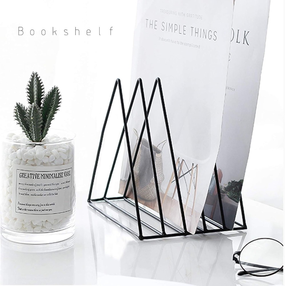 Triangle File Holder,5 Slot Metal Vinyl Record Stand Holder Magazine Newspaper Holder Photography Props for Office Home 1 Pc black Triangle File Holder: our magazine shelves are made of iron wire, durable. This folder shelf is a triangle shape, with strong stability, your files will never fall down. Beautiful appearance: our magazine shelf adopts simple nordic style, with simple and generous design. Beautiful appearance can be used as photography props for photographers. Take a beautiful picture for our triangle bookshelf. Widely used: our triangle bookshelf is mainly used to store all kinds of things, such as documents, magazines, books, records, newspapers, etc. With our triangle bookshelf, you can better save space and keep the desktop clean. Scene: you can put it in the study, living room, bedside, coffee shop, office and studio to add a touch of light to your space. Attention: Please check our size before purchasing Product Name: Nordic style magazine newspaper bookshelf Material: Iron Application: put all kinds of files, books and magazines, save space. Scene: office, studio, home