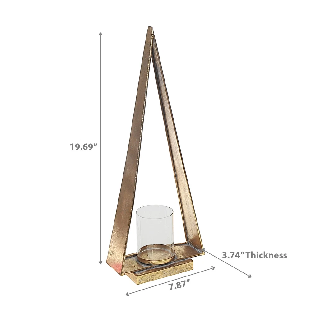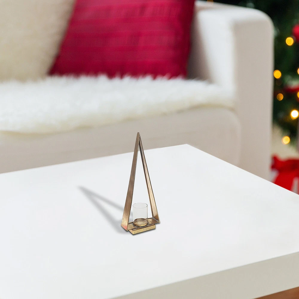 Illuminate your space with modern elegance using a Metal Triangle Candle Holder (Small). Featuring sleek lines and a minimalist design, this chic holder adds a touch of contemporary style to any room. It is made from durable metal, making it a long-lasting candle partner for your living room. The triangular shape creates striking visual interest when paired with your favourite pillar or votive candles. Display this metallic candle stand on a mantle or dining table to enhance the ambience of any occasion. It comes as a single piece. Free Shipping Over $49.99* Details Triangle Metal Candle Holder Small - Multi Product Description: Illuminate your space with modern elegance using a Metal Triangle Candle Holder (Small). Featuring sleek lines and a minimalist design, this chic holder adds a touch of contemporary style to any room. It is made from durable metal, making it a long-lasting candle partner for your living room. The triangular shape creates striking visual interest when paired with your favourite pillar or votive candles. Display this metallic candle stand on a mantle or dining table to enhance the ambience of any occasion. It comes as a single piece.