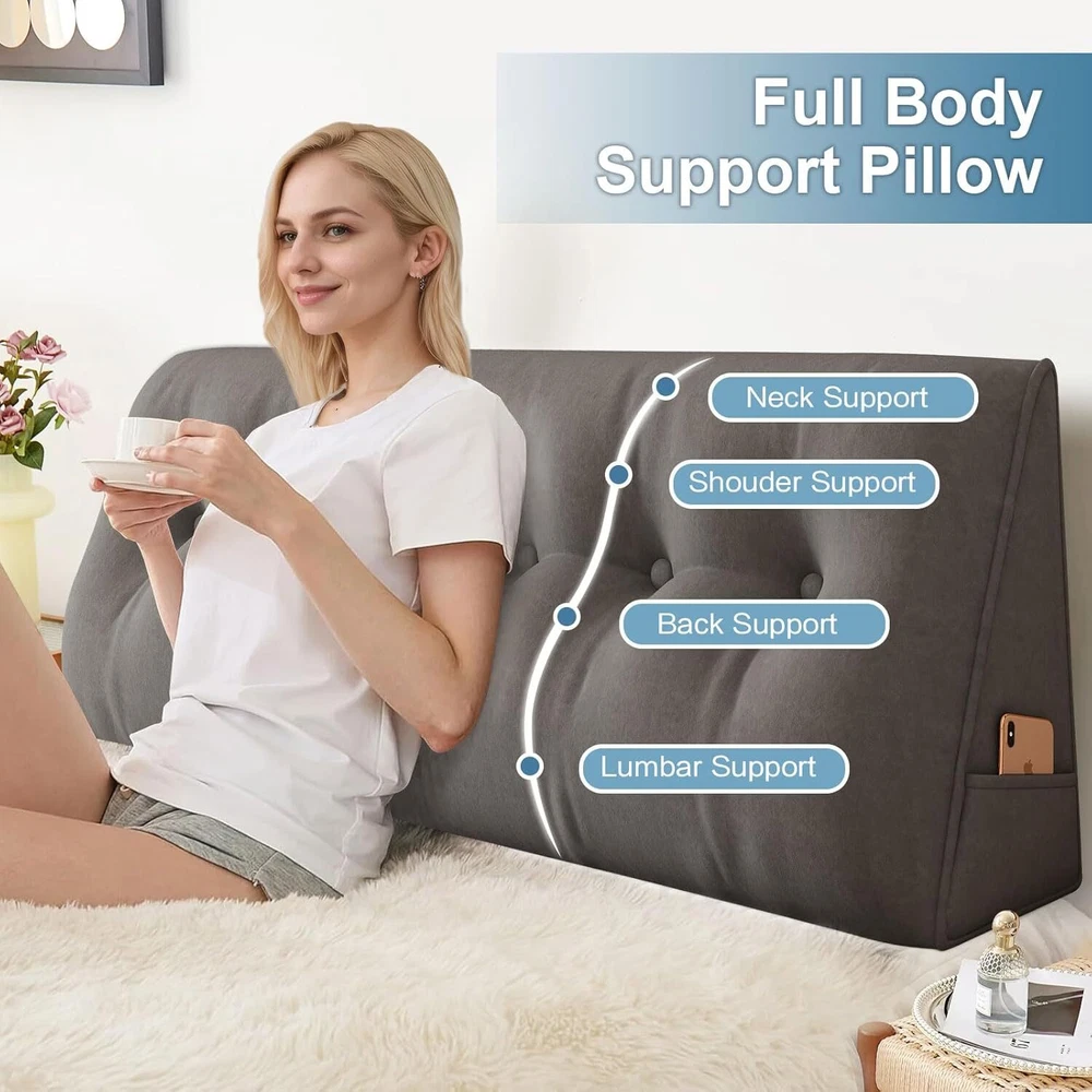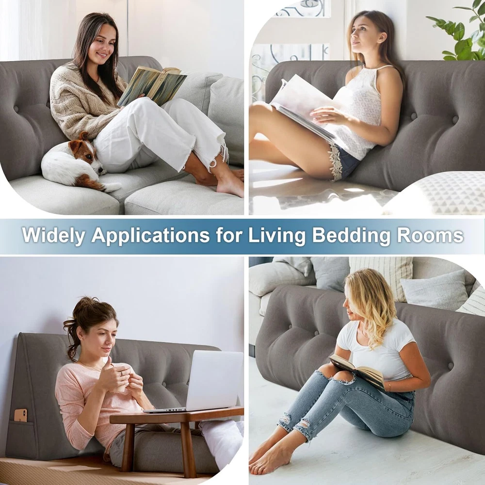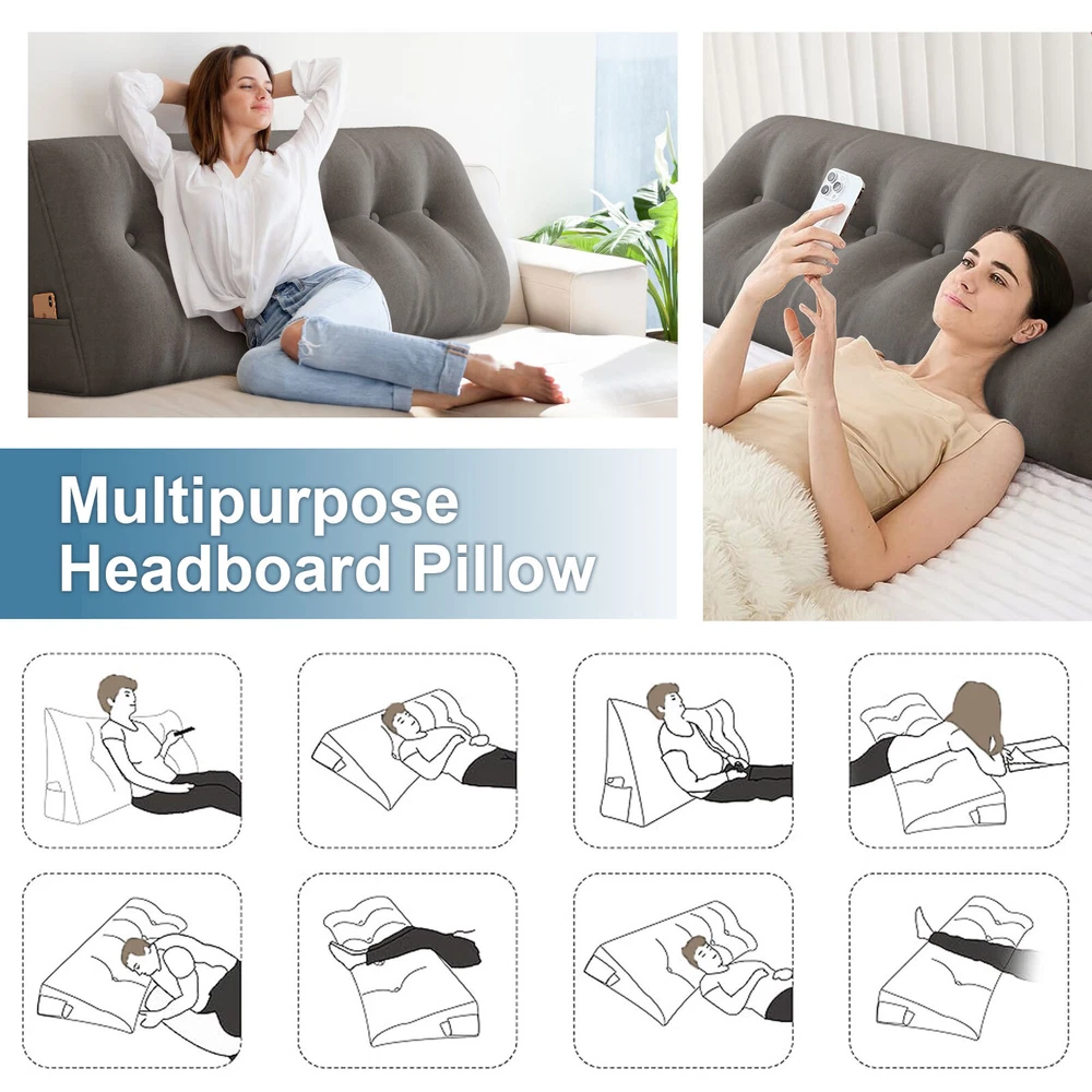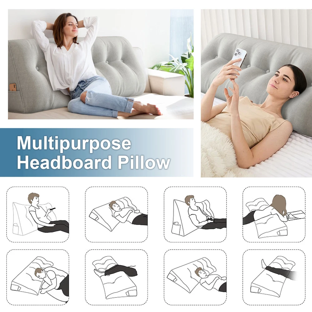 Description Similar Items Description Features: — Perfect curve: Can Be Used on Your Waist, the perfect fit the waist, effective to release of lumbar pressure; — The Pillows with buttons design, make the pillows look more full, three-dimensional stronger; — This is Supportive, Alternative, Adjustable Pillow,Multifunctional, Multipurpose, Multiuse pillow, Better Fit Propping Up, Inclined, Bolster, Slope, Angle, Body, Uplift, Lumbar, Headboard, Daybed, Waist pillow — This is bed wedge pillows for sleeping, is triangular pillow and decorative throw pillow, it's Easy to Wash cover, is Ultra Soft Solid pillows, Filled with High-quality PP Cotton, Good Elasticity and Durable; Feature: 【GREAT BACK SUPPORT】Our headboard wedge pillow provides excellent back, lumbar, and neck support while sitting up in bed, reading, and watching TV. The large headboard backrest support pillow fits perfectly to your mattress. 【PREMIUM Material】The pillow is designed with a breathable soft and durable cover that complements your home decor. The premium polyester fiber filler is plump enough to support your body 【SIDE STORAGE POCKET】With the side storage pocket, your can keep phone or other things within arm's reach. 【MULTIPURPOSE 】Our large triangular pillow is not just for the headboard; it can be used for various purposes and occasions. It is perfect as a bed headboard for maximum comfort while working, sitting, or playing on the bed. Use it on beds, daybeds, sofas, couches, floors, or in kids' playrooms to refresh your home decor. 【ULTIMATE COMFORT】Ergonomically designed for maximum comfort! If you experience discomfort or pain in your upper back and shoulders, our backrest positioning support pillow is here to help. The headboard cushion is soft yet supportive, providing relief from sore backs and orthopedic pains. 【EASY TO MAINTAIN】The removable cover make it easy to clean and maintain. Simply take off the cover whenever you need to wash it. Specification: Product Name: Wedge Pillow Features: Firm Support Season: Four seasons Shape: Wedge triangular pillow Size: 150*50*20cm/200*50*20cm Cover Material: Polyester (Velvet) Fill Material: Polyester Fiber Color: Gray/Light Gray/Beige/Blue Package Included: 1x Wedge triangular pillow Note: 1.We provide clear pictures, measurements where possible. Please check as much as possible to make sure the item is the one that you need. 2. Please allow 0.5-1 inch difference due to manual measurement.(1inch=2.54cm) 3.The color of the actual items may slightly different from the listing images due to different computer screen, thanks for your understanding. Payment 1.We accept many methods of payment. 2.All major credit cards are accepted through secure payment processor PayPal. 3.We ship to your eBay or Paypal address. Please make sure your eBay and Paypal address is correct before you pay. Shipping 1.We ship to your eBay or Paypal. Please make sure your eBay and Paypal address is correct before you pay. 2.Items will be shipped within 1 business day when we received payment. 3.Delivery time depends on destination and other factors; 4.International buyers please note: a.Import duties, taxes and charges are not included in the item price or shipping charges. These charges are buyer’s responsibility. We will try our best to reduce the risk of the custom duties. b.Please check with your country's customs office to determine what these additional costs will be prior to Shipping: Free Shipping within the 48 States. We ship within the United States only. The term EXCLUDES the states of Alaska, Hawaii and all off-shore U.S. territories and possessions such as Puerto Rico, Guam and Virgin Islands. We do not ship to APO and FPO. Delivery Time: 3-8 business days (Varies by Destination) If you have any questions or problems with delivery, please contact us. Return & Warranty 30 DAY MONEY BACK SATISFACTION GUARANTEE | 360 DAY WARRANTY COVERS MANUFACTORY DEFECTS Returns are permitted and must be initiated by the buyer within 30 days from delivery date. In order to return an item, you must contact to request an Return Merchandise Authorization Number (RMA). No return package will be accepted without a valid RMA number. All products are covered by our warranty against defects. If an item proves to be defective, please contact to have the product repaired or replaced. Contact US Please send all correspondence through the eBay messaging system. Messages will be replied during business hours: 9AM to 6PM Pacific Time. Monday to Friday only (excluding Holidays). After hours messages will be replied on the next business day.
