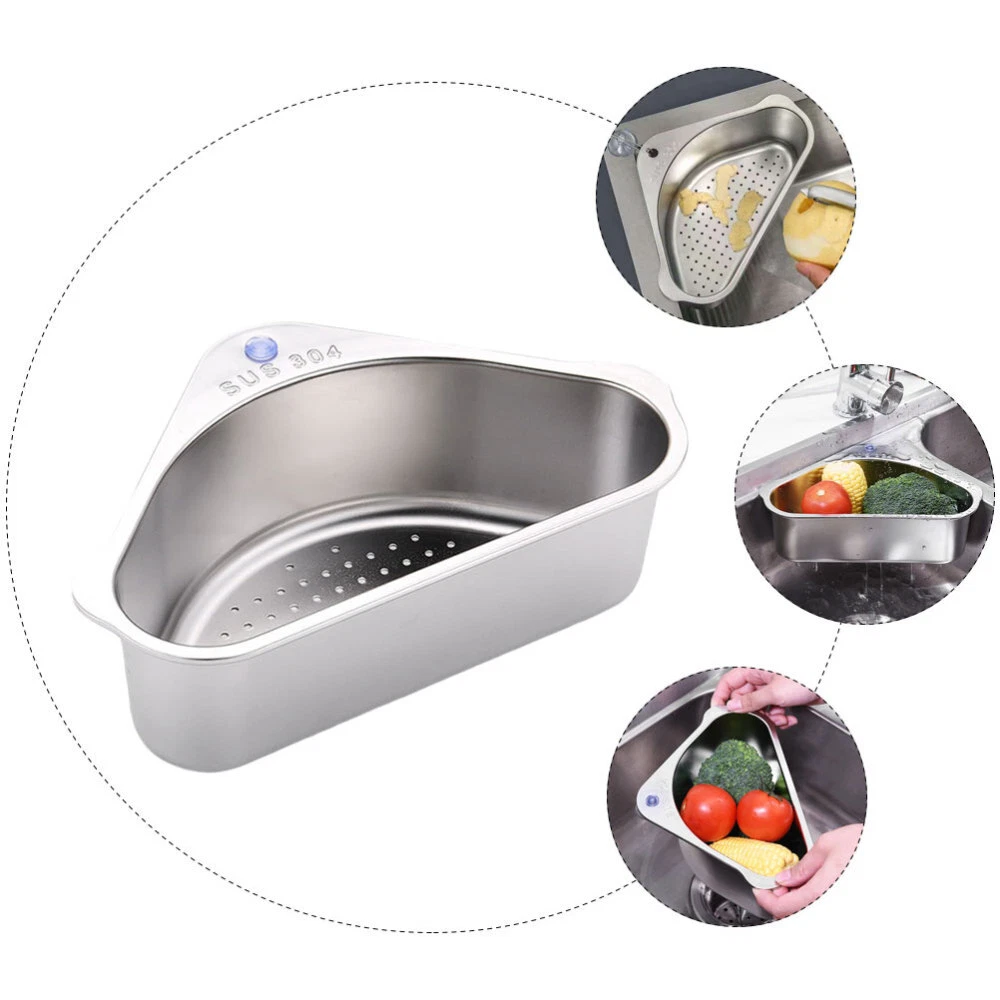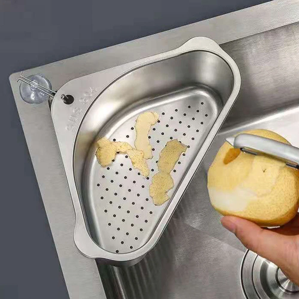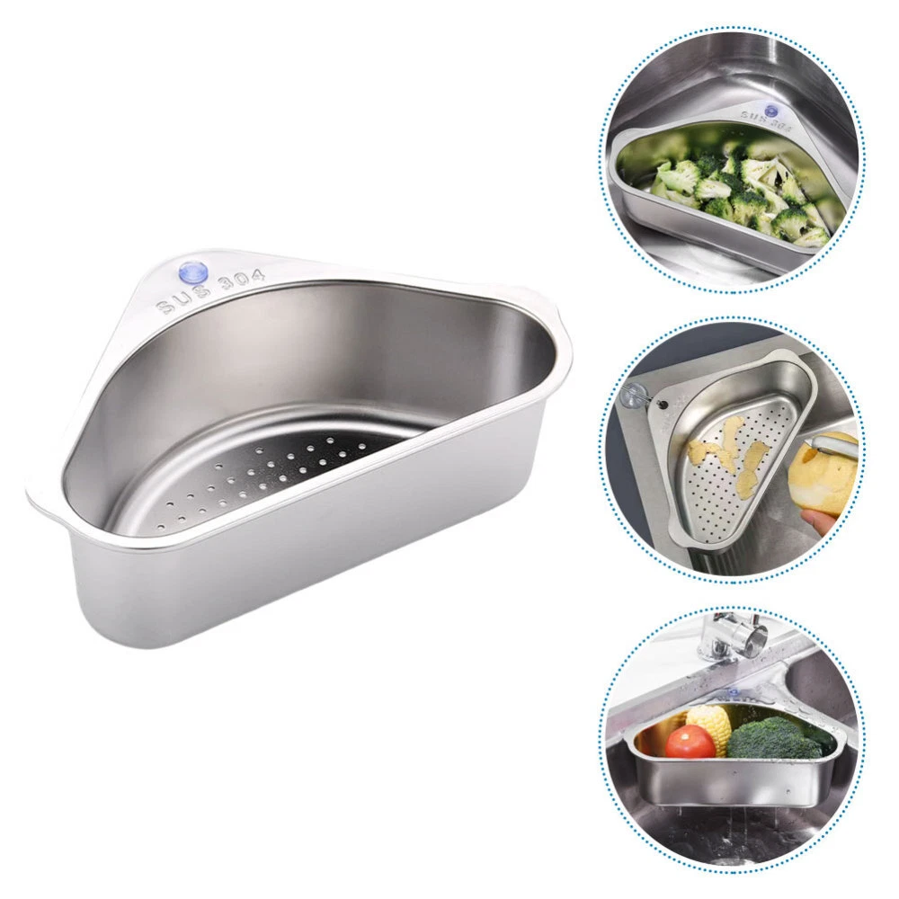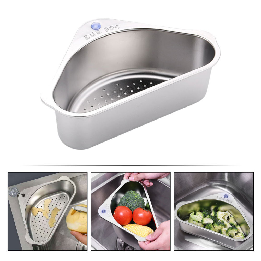 Triangular Suction Cup Sink Drain Basket Stainless Steel Colander