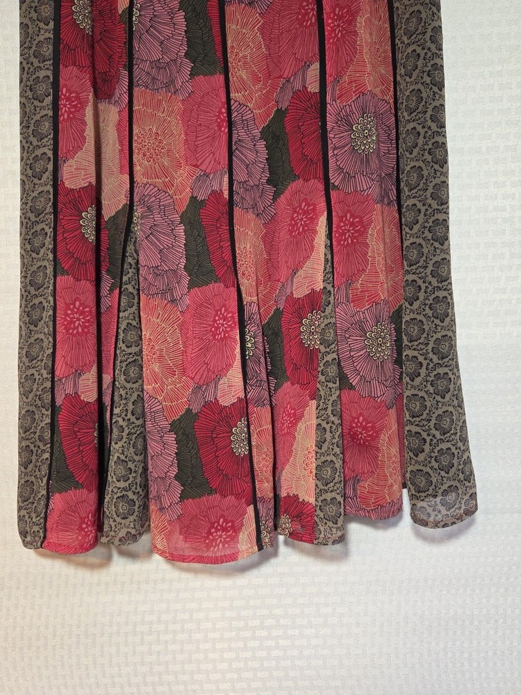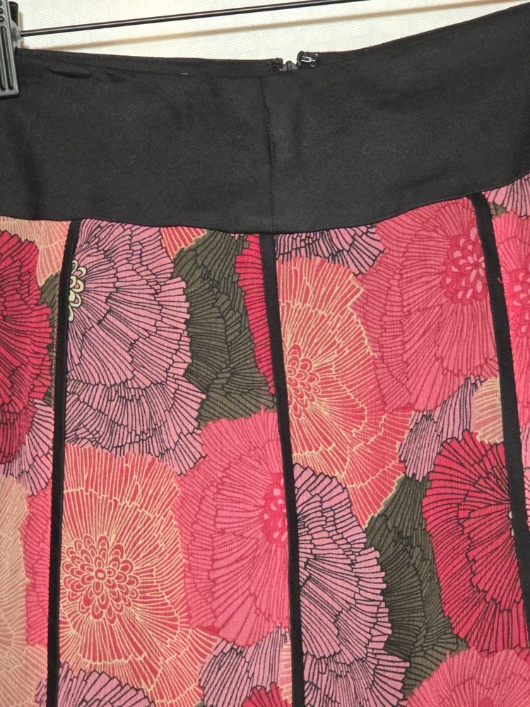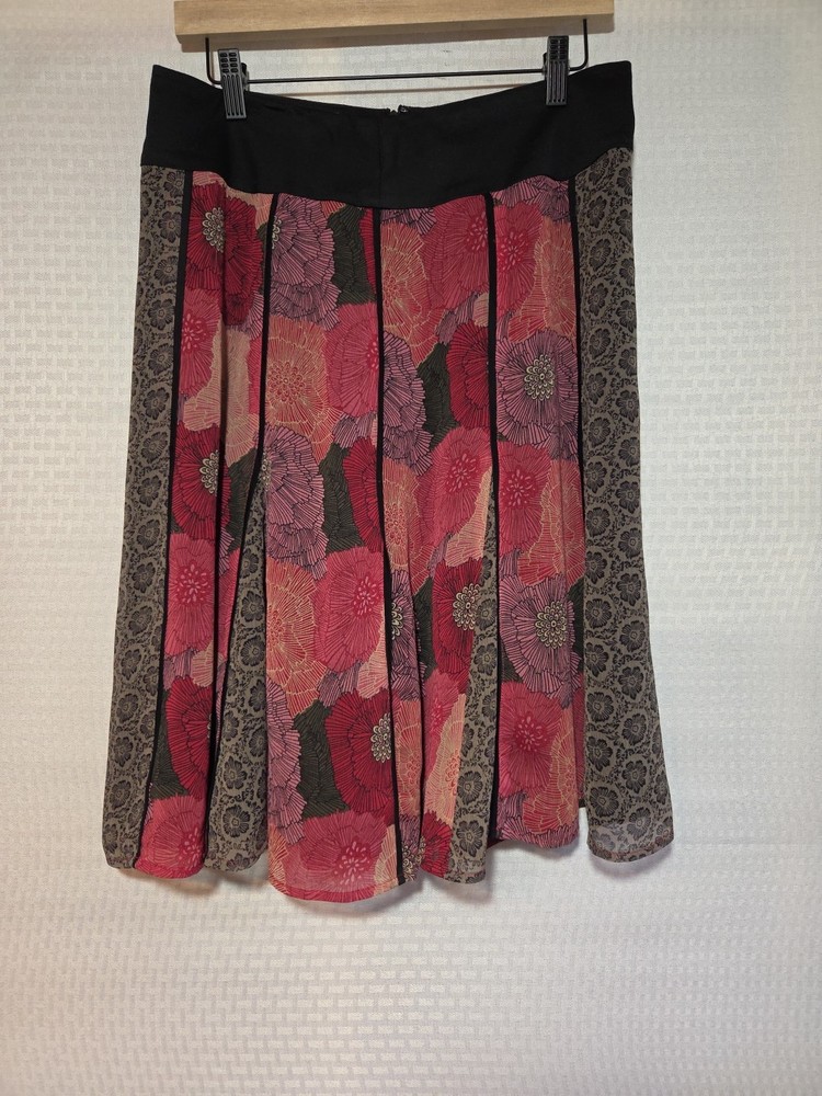The Tribal Women's Size 6 Small S Multi Fabric Swing Skirt with a Black Waistband is a versatile and stylish piece perfect for various occasions. This knee-length skirt features a floral pattern in multiple colors, with a zip closure and pleated accents. Made from polyester, it offers a flare style that is ideal for summer, fall, and spring seasons. Whether for travel, weddings, parties, or workwear, this skirt from the Tribal brand is sure to make a statement with its bohemian, retro, and festival-inspired theme. Floral color Skirt Fairy Goth Swing Purple Black Lined There are belt loops on the front and back but there isn't a belt Colorful Unique Artsy