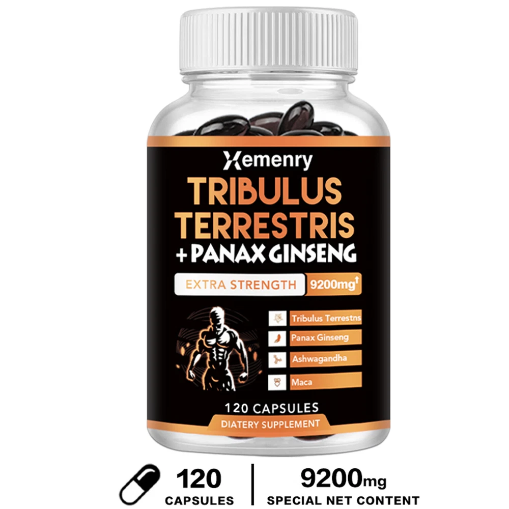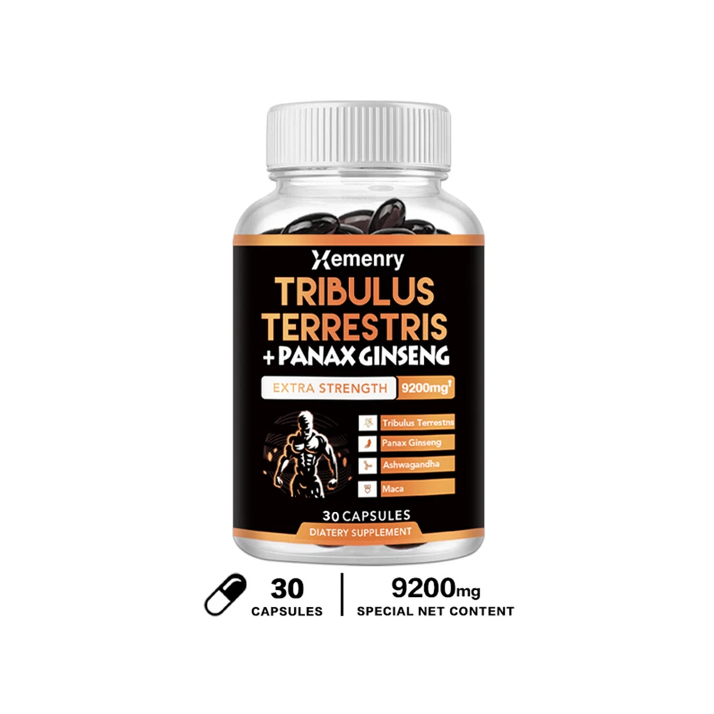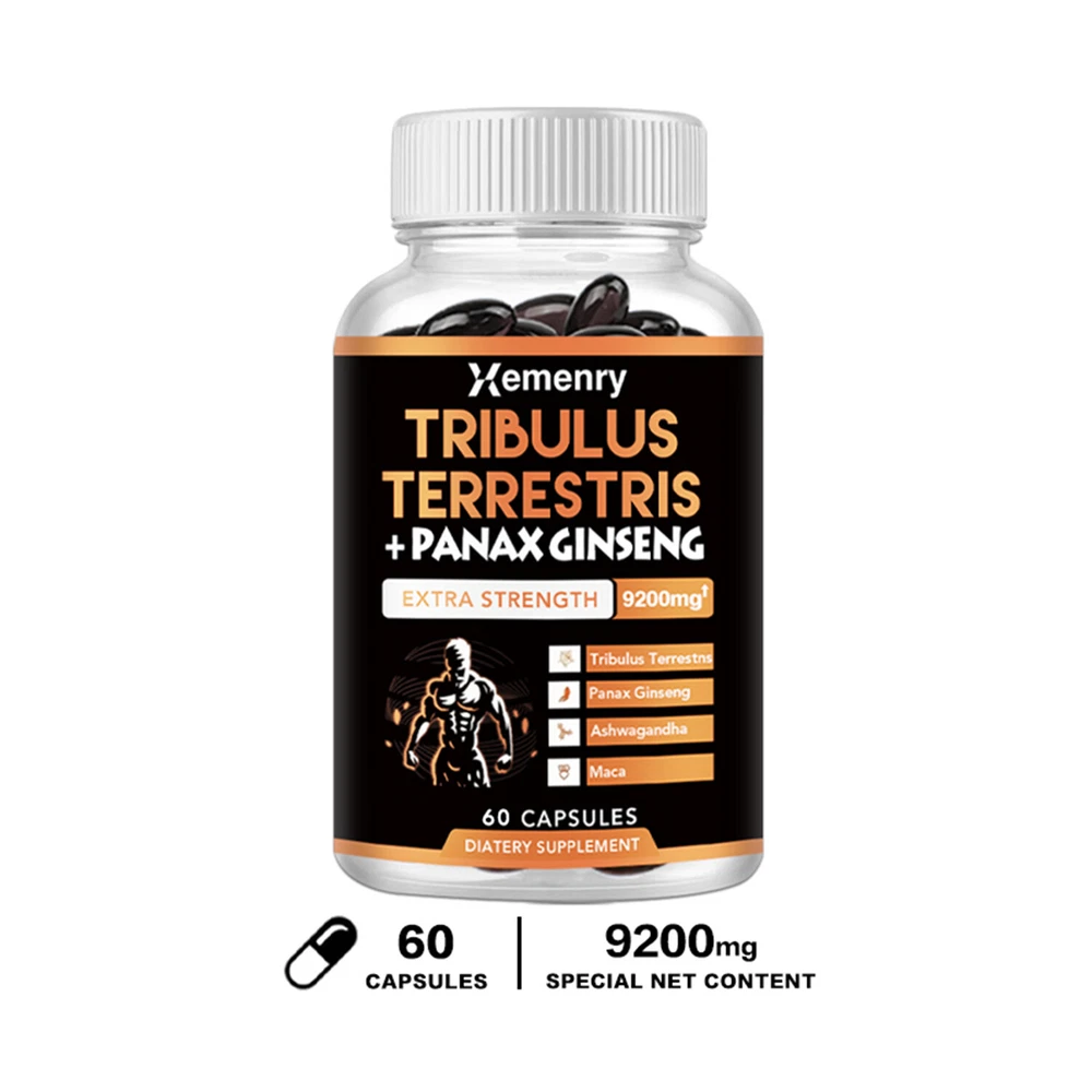 Effects: Testosterone Booster, Energy & Endurance Ingredients: Tribulus Terrestris, Maca, Ginseng, Ashwagandha Directions: Take 2 capsules once daily after a meal. Shipping: Ships within 48 hours on working days. Shelf life: 2 years Description: Maximum Potency: Our Tribulus terrestris extract has a ratio of 20:1, the highest ratio on the market. Other brands only use less than 10:1 extract or even only fresh powder. SPECIALLY FORMULATED, 9200mg PER CAPSULE: It's one of the most potent Tribulus supplements on the market. Made with the highest quality ingredients, 100% natural, vegan, non-GMO, gluten-free and free of fillers, preservatives, binders or harmful chemicals. Products are third party tested and formulated in GMP certified facility to ensure their authentic and sustainable manufacturing process. Document