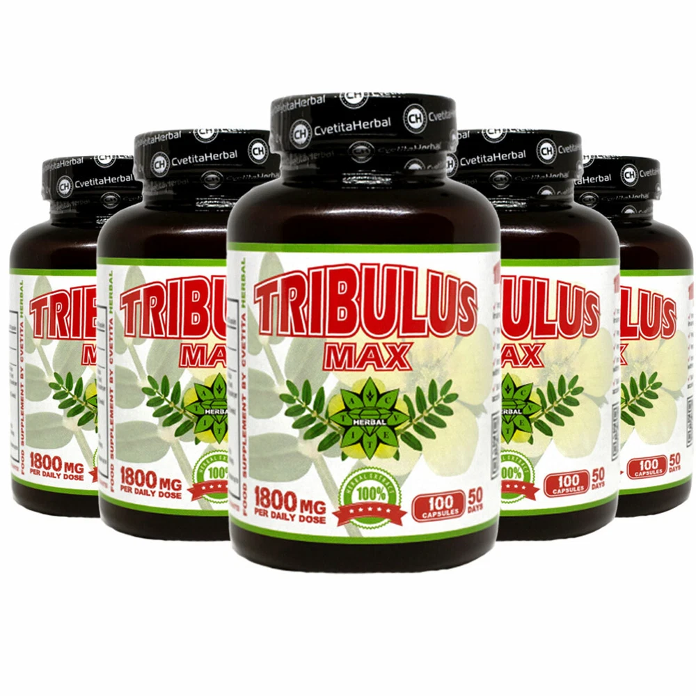 Tribulus Terrestris 5 x 100 capsules 900mg Bulgarian Tribestan DRY Extract NEW IMPROVED FORMULA GMP Certified Tribulus terrestris is a flowering plant that belongs to the Zygophyllaceae family that thrives in warm temperate and tropical climates in southern Europe, southern Asia, throughout Africa, and Australia. It grows in places with dry, arid climates and poor soil. It is also commonly burra gokharu, puncturevine, caltrop, cathead, yellow vine, goathead, and bindii. What are the benefits of Tribulus Terrestris? 1. It may improve muscle growth When it comes to boosting muscle growth, according to various research health experts ventured that by boosting the level of testosterone in the body, it could help gradually increase muscle mass. 2. It may boost libido Natural libido enhancers such as Tribulus has created a huge appeal simply because unlike libido enhancers in the market, it doesn't pose any serious side effects unless some of the ingredients in the supplement are contraindicated to one's current health condition. Tribulus Terrestris ' popularity is well known across the health and wellness community. Consquently, it is one of the best-selling natural testosterone boosting supplements today. Benefits of Tribulus Max Increases testosterone levels into the physiological range Improves strength and endurance in a natural way Helps to gain muscle mass faster and naturally accelerates fat burning Improves blood circulation Helps to lower the level of cholesterol in your blood Suitable for professional athletes who seek faster recovery Suitable for combination with other nutritional supplements and extracts Intake of Tribulus Max Nutrition Facts Serving size: 1 capsule (900 mg) Per container : 100 capsules Supply: 50 days Suggested daily dose : Take 1 (one) capsule 2 (two) times a day after meals. For active athletes : Take up to 3 (three) capsules a day between meals. Suggested intake period : For best results, this product should be taken 3 months (12 weeks) in a row. The cycle can be repeated after two weeks of break. Ingredients : Bulgarian Tribulus Terrestris herb, gelatin capsule. Storage : Store in a dry, cool, and protected from a direct sunlight place. Keep out of reach of children! Payment Methods - PayPal Delivery methods: Economy services - 7-14 working days Expedited delivery by DHL express worldwide - 3-5 working days (it depends the customer`s location)