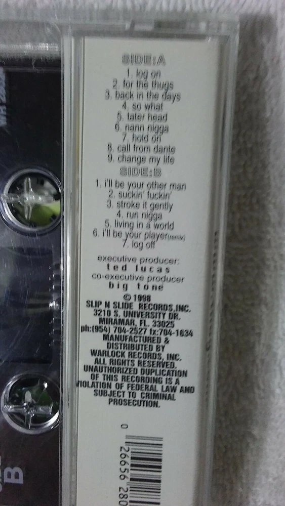 This cassette features the iconic Trick Daddy's album "www.thug.com" released in 1998. The clear jewel case contains the standard cassette format with a clear color design. The inlay is in mint condition and the case is very good plus (VG+). This album is a must-have for any fan of rap and hip-hop genres. The cassette has not been modified and does not come with any custom bundles. It is a great addition to any music collection. The case has scuffs from storage but the cassette and inlay are in perfect condition NOTE: Due to previous customers abusing the system of cassette returns. I will not be accepting returns at this time. If you message me I can certainly make an exception to accept the return. Everything is photographed,TESTED prior to packaging and packaged with care. [1998 - Warlock]