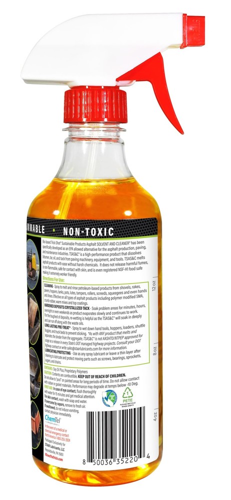 Trick Shot Asphalt Solvent & Cleaner delivers revolutionary cleaning solution as a biodegradable industrial degreaser specifically engineered as asphalt remover, tar remover and oil stain remover from paving tools and equipment. This asphalt remover utilizes an advanced food-grade formula that prioritizes worker safety while maintaining superior cleaning solution effectiveness on shovels, rakes, rollers, hoppers, tanks, tampers, and other paving equipment. Unlike traditional petroleum-based solvents, this non-toxic asphalt cleaner eliminates harmful fumes and environmental risks through its non-flammable properties. The powerful deposit dissolution technology penetrates deeply into stubborn, crystallized buildup on equipment surfaces, functioning as both a tar remover and heavy-duty industrial degreaser that breaks down complex hydrocarbon chains. This versatile asphalt cleaner accommodates various application methods including spraying, dipping, and rinsing specifically for equipment maintenance across all paving tools. This degreaser serves as a protective release agent creating invisible barriers that prevent asphalt adhesion to metal tool surfaces, dramatically reducing cleanup time and extending equipment lifespan. Proudly manufactured in the USA with strict quality control standards, this asphalt cleaner bridges industrial-strength performance, ideal for professional paving contractors maintaining their equipment while meeting DOT compliance requirements. ENVIRONMENTALLY FRIENDLY ALTERNATIVE TO DIESEL FUEL: Unlike traditional petroleum-based solvent cleaner that pose serious health and environmental risks, this biodegradable degreaser utilizes a revolutionary food-grade formula that prioritizes safety and sustainability. The non-toxic asphalt removal composition eliminates concerns about harmful fumes, skin irritation. POWERFUL ASPHALT REMOVER FROM EQUIPMENT: This asphalt remover features advanced cleaning solution that penetrates deeply into even the most stubborn, hardened deposits that have crystallized on tools and equipment surfaces. Whether dealing with fresh asphalt residue or years-old buildup on shovels, rakes, rollers, hoppers, tanks, and tampers, this industrial cleaner breaks down complex hydrocarbon chains in tar compounds. For challenging buildup, it can work overnight for deep penetration. VERSATILE TOOL CLEANING APPLICATIONS: This industrial degreaser tackles the toughest asphalt-related challenges on paving tools and equipment including shovels, rakes, rollers, hoppers, tanks, tampers, and truck beds. This degreaser act as tar remover, asphalt remover, oil stain remover for your tools and paving equipment. The flexible application of this asphalt solvent and cleaner accommodates various cleaning scenarios through spraying, dipping, or rinsing methods for tool maintenance. PROTECTIVE ASPHALT RELEASE TECHNOLOGY: This asphalt cleaner and solvent serves as a proactive maintenance cleaning solution by creating a protective barrier on tool and equipment surfaces. This release agent barrier prevents asphalt and tar from forming strong adhesive bonds with metal surfaces, dramatically reducing cleanup time and extending tool lifespan. The protective coating of this industrial degreaser withstands multiple uses and maintains effectiveness under extreme temperatures. MADE IN USA ASPHALT REMOVER: The domestic production of this asphalt cleaner and solvent ensures consistent quality control, reliable supply chain access with bulk container volume available, and compliance with strict American manufacturing standards. This industrial degreaser bridges industrial-strength performance with user-friendly safety, making it suitable for professional paving contractors managing large commercial projects. PLEASE NOTE: Product is NOT intended to clean driveways or concrete.