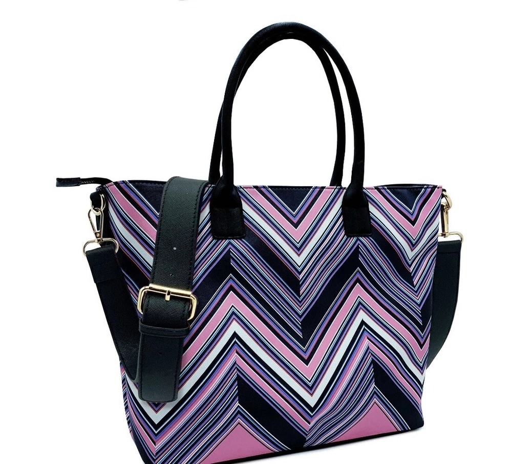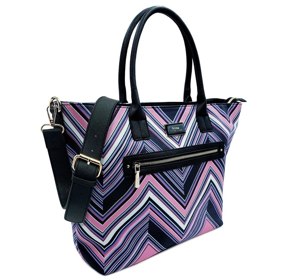 This Trina Turk crossbody purse is a stylish and versatile accessory suitable for various occasions. The bag features a striped pattern and a zip closure, with double handles and a detachable strap for convenience. It is made of high-quality leather in a multicolor design and lined with black fabric, with silver hardware accents. The interior of the bag has inner pockets for organization, and the adjustable strap allows for a comfortable fit. This designer bag is perfect for travel, workwear, or casual use. Add a touch of color and designer flair to your wardrobe with this Trina Turk crossbody purse.