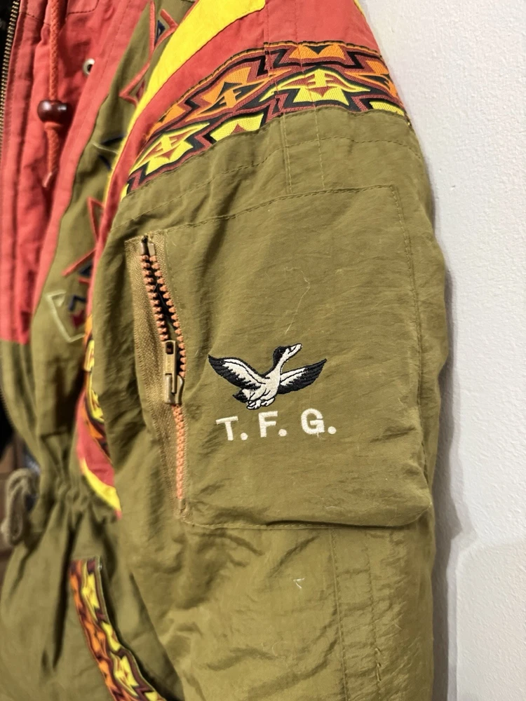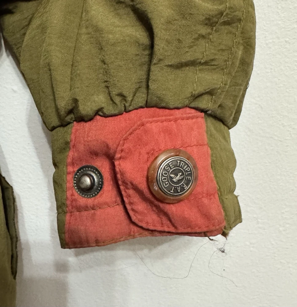 Stay warm and stylish this season with this vintage Triple F.A.T. Goose puffer jacket. The solid green color and hooded design make it a trendy addition to your wardrobe. The jacket is made of durable polyester and features a quilted and insulated design, perfect for fall, winter, and spring. This mid-length jacket has a regular fit and long sleeves, making it comfortable for everyday wear. The jacket is perfect for casual occasions and features a zip closure for added convenience. The Triple F.A.T. Goose brand is known for its quality and this jacket is no exception. Stay warm and fashionable with this must-have jacket.
