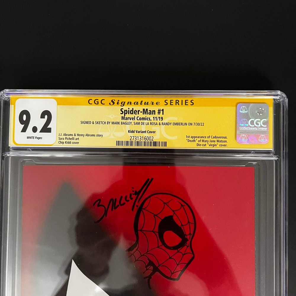 Free shipping! This amazing Spider-Man #1 2019 CGC SS 9.2 Kidd Variant is a must-have for any Marvel and Spider-Man fan. This single unit comic book features a variant cover, key issue, collector's edition, and the first appearance of a new character. The comic book is in excellent condition and includes signatures from Sara Pichelli and JJ Abrams. The comic book is part of the Spider-Man series title in the Marvel Universe, and it is from the Modern Age (1992-Now) era. It is in the English language, and it has an issue number of 1. The comic book is a US Comics Tradition and features Spider-Man and Spider-Man (Peter Parker) characters. It is a Triple signed and remarqued variant type incentive variant comic book.