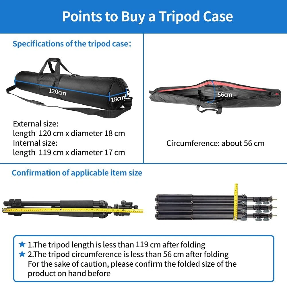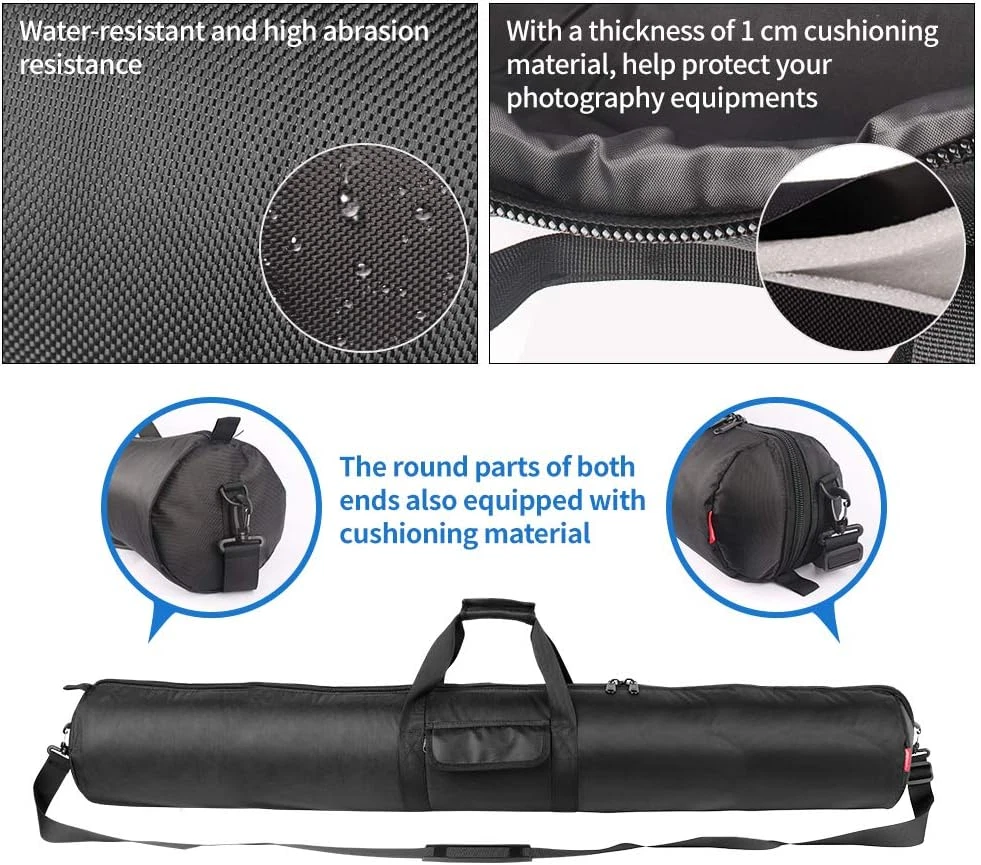 Menu Other Items Feedbacks About Us Contact Us Add To Favorites Tripod Bag, 47X7X7In All Padded Tripod Carrying Case with Shoulder Straps and Handles, Heavy Duty Light Stand Bag with Two Zippered Pockets for Pool Cue, Speaker Stand, Mic Stand Compatible Equipment: HEMMOTOP 120 cm tripod bag is compatible with tripods up to storage length of 46 inches. Size: Length 47 in(120 cm) x diameter 7 in(18 cm) Thick Protective Cushioning: All sides of the tripod case are equipped with a thickness of 1 cm cushioning material to your equipment from damage. It is easy to transport your travel camping pole, camera tripod, fishing rod, mic stand, tent pole and more Durable Nylon Material: Tripod carrying case is made of heavy-duty and durable nylon material, which can carry heavy equipment safely. Water-resistant materials protect your equipment from unexpected weather Reliable Zipper and Sewing: With SBS zippers larger than usual zippers, make it quickly and smoothly to get your tripod inside and out. With reliable sewing, even heavy equipment can be transported safely Convenient Carrying: Hand-held and shoulder-back two options. Allows you to pack up your light stand and tripods anytime, anywhere. Please note: The tripod bag will be folded before delivery so there will be some creases Wide Application: Tripod carrying case is suitable for mic stands, tent poles, microphone stands, boom stands, guitar stand, photo backdrop stands, led lighting stands, telescope, telescoping awning poles, lighting gear or camera equipment and more Product Description Hemmotop Tripod Carrying Case Bag 47x7x7in/120x18x18cm Heavy Duty with Storage Bag Hemmotop tripod case is well-padded, and suitable for carrying or storing Telescope, Telescoping awning poles, Lighting gear, Professional Tripod and Monopod, Microphone Stand, Speaker Stand, Boom stand,Guitar stand, Beach Umbrella, Photo Backdrop Stand, LED Lighting Stands or Camera Equipment etc. - Thick padding all around - A heavy nylon and well stitched - Both the inside and outside storage pocket - The interior tie downs to help keep things from shifting - Easily carried Pockets (zippered) on the inside and outside Hemmotop tripod case has and internal pocket with zipper and likewise on the outside (which is larger), which is convenient for storing tools, a release, spare parts and small items or extra gear. Convenient and easy to use Large fasteners and zippers Adopting SBS zippers larger than usual zippers, make it quickly and smoothly to get your tripod inside and out. One side of the tripod case is made of zipper wrapped, so that it is convenient to store and remove. The other side is a closed design, which can better protect the pan head of the tripod. Double zipper, opening and closing is faster and more convenient. Zipper size: Approximately 4 cm Excellent protection Not only the main body, but also the round parts at both ends have a thickness of 1 cm cushioning material, help protecting your important equipment . Suitable for carrying and storing camera and video tripods, musical instruments, music stands, microphone stands, fishing rods, light stands, cosplay accessories, and more. Well-designed The ties inside secure your equipment together so they don’t rattle around and damage anything. Made of heavy-duty and durable nylon material, which can carry heavy equipment strongly. Water-resistant materials protect your equipment from unexpected weather. With reliable sewing, even heavy equipment can be transported safely. Handheld or Shoulder Carrying Item Specification Item model number TOP-CASE-120 Product Dimensions 47 x 7 x 7 inches Country of Origin China Item Weight 1.72 pounds Department Unisex Adult Size 47x7x7in Dimensions Shipping Returns Additional Info Product Dimensions: 7.0 inches x 47.0 inches x 7.0 inches. Weight: 1.72 lb Fast shipping is very important for us. Our standard shipping service is FREE. Your order will be shipped within 1-3 business days upon full payment received. Most items are delivered within 3-5 business days, however, please allow 3-10 business days. We are shipping only to USA. We only ship to the confirmed Paypal address. We reserve the right to cancel any order for any reason at any time. We are not responsible for undeliverable addresses. We offer a 30 day return policy from checkout winning date. Your satisfaction is guaranteed! If for any reason you are unhappy with your item, just return it within 30 days for a full refund, minus shipping cost. Please contact us prior to initiating a return so that we can issue you a refund authorization. Items defective upon receipt must be packaged in their retail packaging as if new and returned with a detailed description of the problem. Return shipping fees are not refundable. We reserve the right to decline any returns if the above guidelines are not followed. All of our items, unless otherwise stated, will only run on 120 volts. Please check to make sure your country complies with these specifications. If you have a problem or question regarding your transaction please contact us before leaving any type of feedback. We will work with you to resolve any problem you may have.