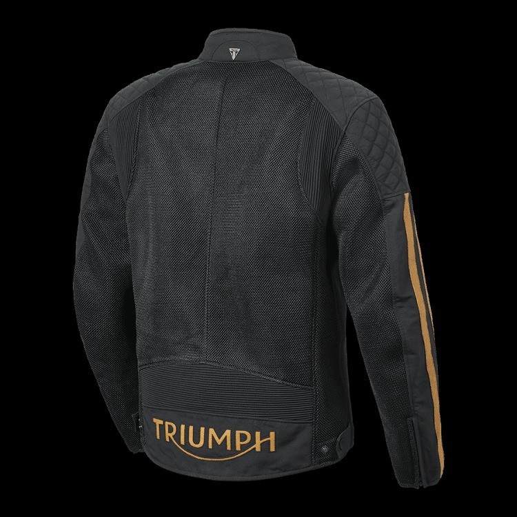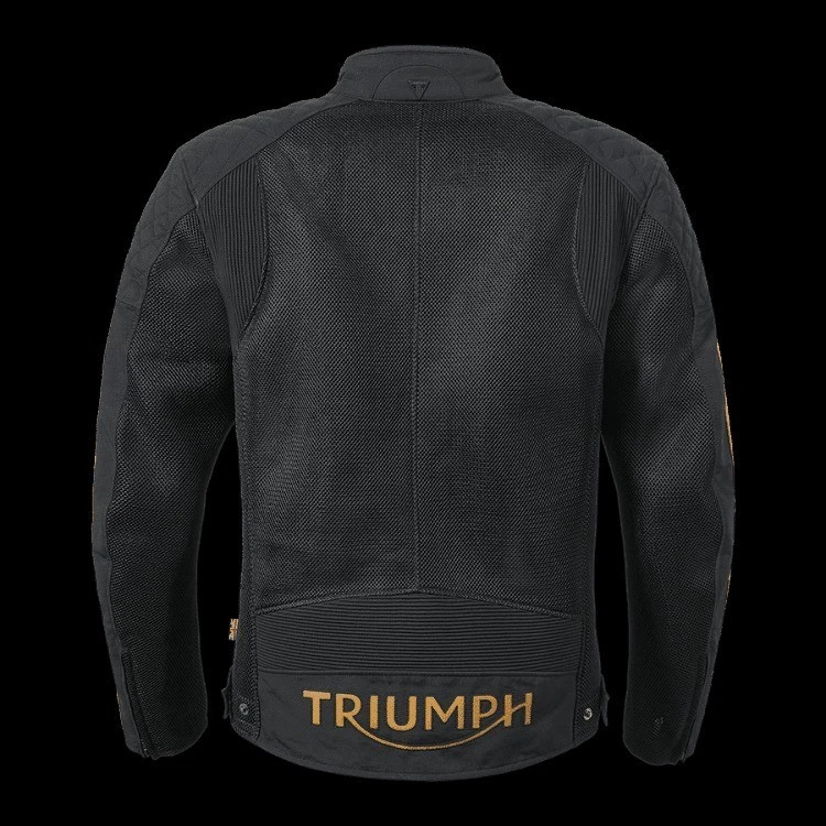 New Black Triumph Braddan Men's Summer Mesh Motorcycle Racing Real Cafe Racer Biker Mesh Jacket Experience ultimate riding comfort and protection with this premium Triumph-inspired biker jacket. Designed with a sleek and breathable mesh structure, it ensures optimal ventilation while maintaining a rugged and stylish look. The quilted shoulder panels enhance durability, and the classic striped detailing on the sleeves adds a touch of vintage aesthetics. With high-quality zippers and a secure snap-button collar, this jacket offers both functionality and fashion for motorcyclists. Features: Premium Mesh Fabric for airflow and comfort Quilted Shoulders for durability and style Protective Padding for added safety Classic Triumph-Inspired Design with sleeve stripes Secure Zipper & Snap-Button Collar Shipping Policy: Worldwide shipping via DHL, FEDEX & SKYNET within 4-6 business days; $35 extra for remote areas. Delivery in 5-7 business days, with customers responsible for customs fees. Return Policy: 30-day returns accepted; customer covers return shipping. Full refund for items returned in original condition. Customer satisfaction guaranteed.