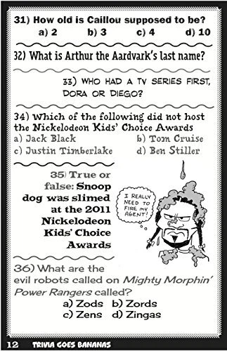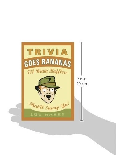 Item Height: 0.6 in Book Title: Trivia Goes Bananas : 711 Brain Bafflers That'll Stump Ya! ISBN: 9781604333428 Author: Anthony Owsley, Lou Harry, Eric Berman Item Length: 7.6 in Language: English Format: Trade Paperback Type: Standard Number of Pages: 160 Pages Item Width: 5.1 in Item Weight: 4.1 Oz Genre: Juvenile Nonfiction Seller Notes: “In stock. Ships immediately.” gtin13: 9781604333428 Topic: Readers / Intermediate, Games & Activities / Questions & Answers, Games & Activities / Puzzles, Curiosities & Wonders Publication Year: 2013 Publisher: Cider Mill Press Book Publishers, LLC Vintage: No