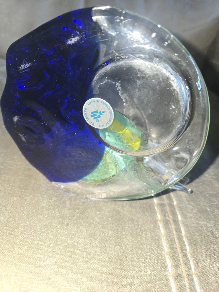 The PartyLite Tropical Fish Glass Tealight Candle Holder is a decorative collectible featuring a tropical fish pattern in multicolor glass. It has a smooth finish and creates a 3D effect, making it a unique and eye-catching addition to any tabletop or shelf. This candle holder is perfect for all occasions and adds a playful touch to any room with its fish-themed design. Measuring 4.5 inches in length, this one-piece collectible is sure to enhance the ambiance of any space with its tropical fish motif.