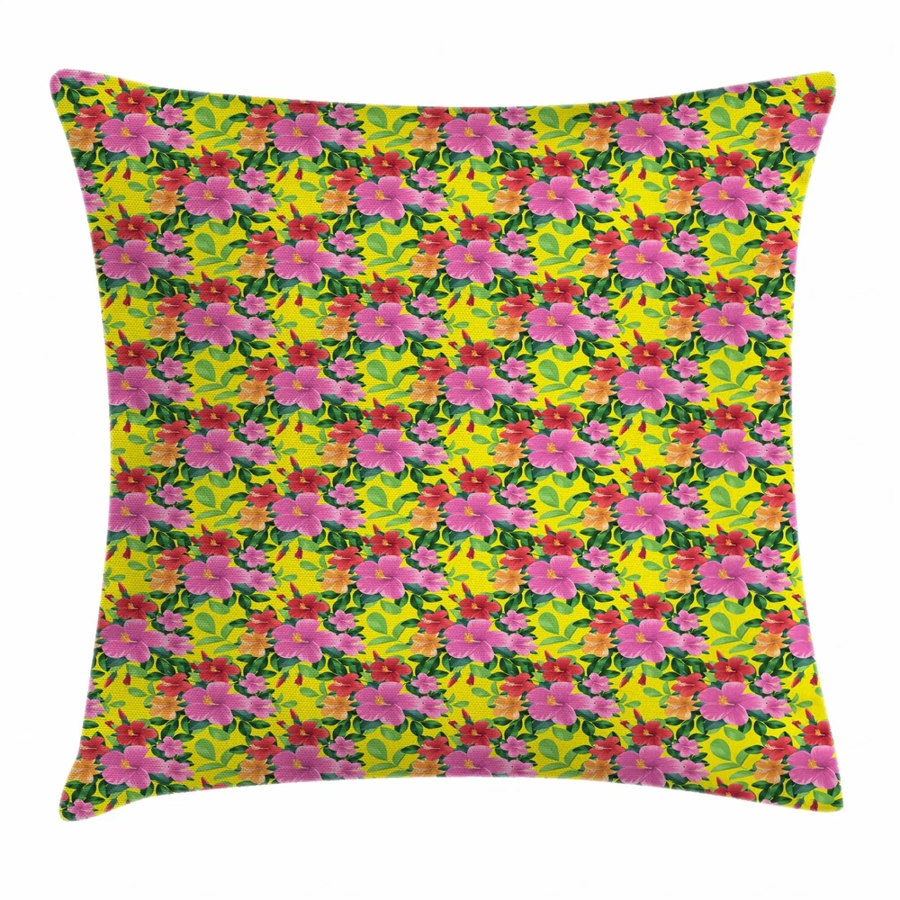 Tropical Hibiscus Throw Pillow Cases Cushion Covers Home Decor 8 Sizes Accent Cushion Cover with digital printing. Comes in 8 different sizes. PRINTED ON BOTH SIDES. With hidden/invisible zipper which allows easy insertion and removal. Time to decorate your home in a simple yet stylish way! Our super plush throw pillowcases will bring a brand new color and freshness to your decoration! These unique designs mix well with various color palettes of your sofa, couch, bed, bedding, rugs, curtains, bench, seating, porch, window seat, loveseat, and all other decor accessories. Perfect for your home, office, playroom, kids room, cafe, study, studio, club, bar, farmhouse, car, and others, you can use these waterproof cushion covers as an aesthetic piece wherever you want. Very durable and fade resistant. Colors won't fade thanks to new digital printing methods. Suitable for indoor and outdoor use. Original and colorful designs for you to choose from. You will find the one for everybody and every interest in our Ambesonne Collection. Consider it as a birthday gift for your mom, dad, sister, brother, grandma, wife, husband, and all other beloved ones. They will be shocked by the superior quality of the item when they open the present. Customized, personalized products are very popular. As manufacturers of digitally printed home textiles, we follow current trends and bring you the latest home fashion. Either a gift to your family or friend, relative or boyfriend girlfriend, or to yourself, the item should be interesting and authentic. MACHINE WASHABLE on a delicate cycle. DRYER SAFE. Thanks to its polyester material, the cover is anti-wrinkle and does not require ironing. The images we display have the most accurate color possible but, due to differences in pc monitors, there can be slight color differences between the product and the image. Due to manual measurement, please kindly allow 1-2 cm discrepancy. This is ONLY the pillow COVER, sold WITHOUT the insert.
