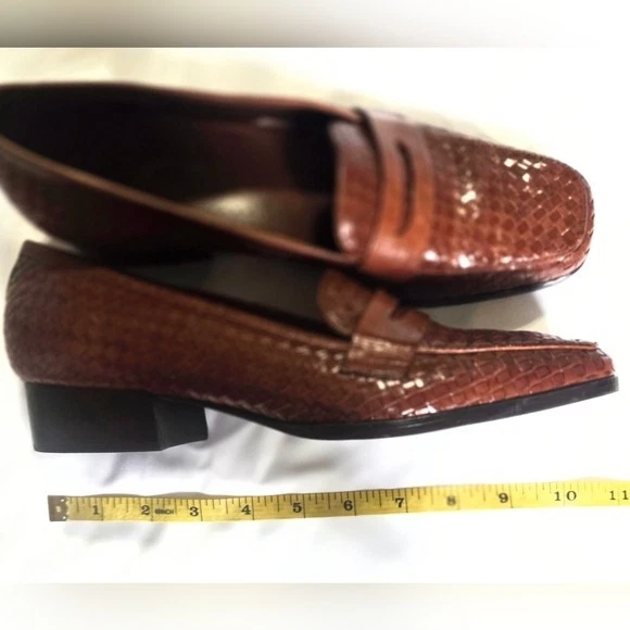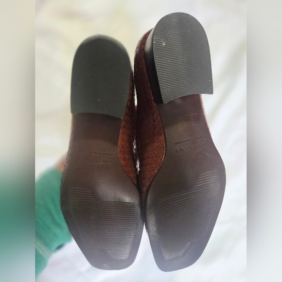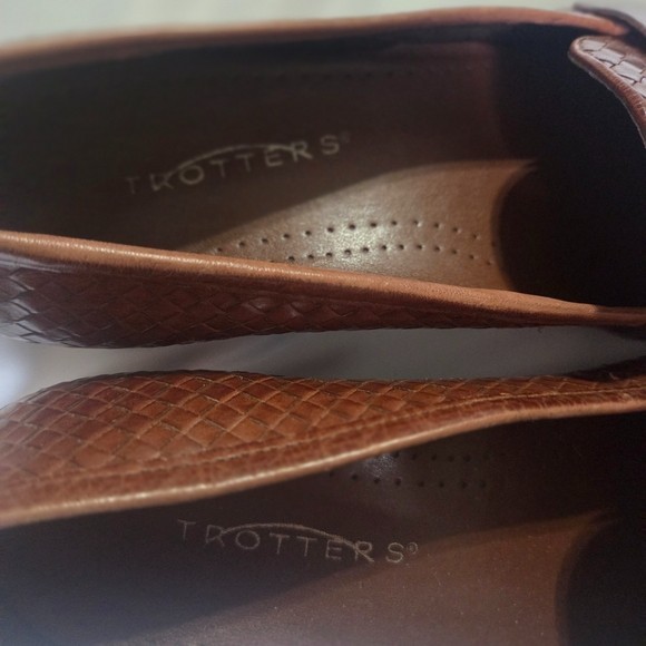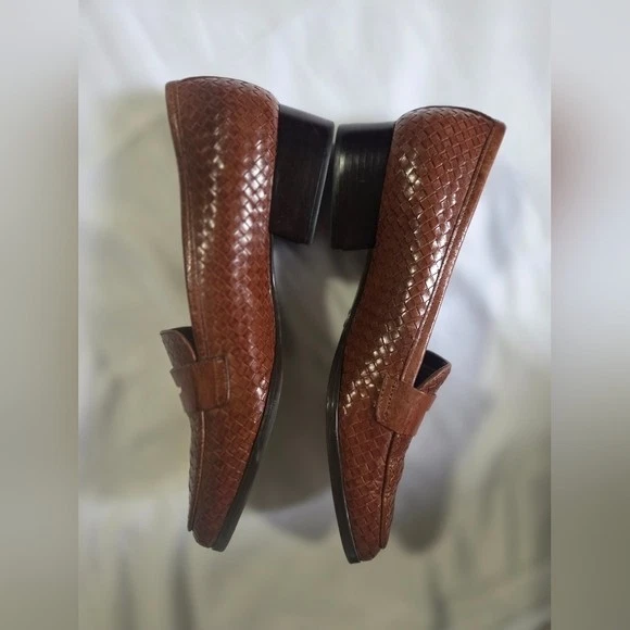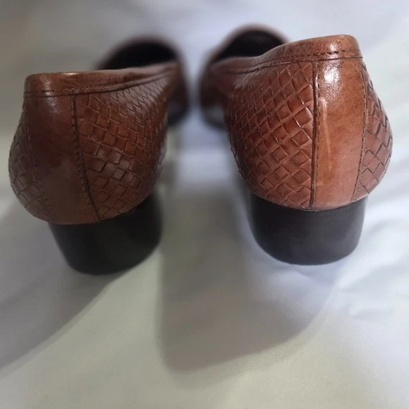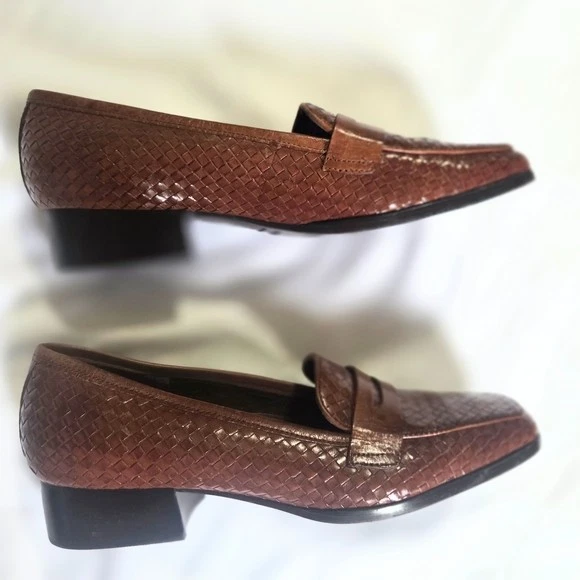 Trotters women’s size 9 brown woven leather loafers with a low block heel and square toe. Comfortable leather work shoes ideal for office, business casual, commuting, or everyday wear. Features a textured woven leather upper, cushioned insole, and durable man-made outsole. Great for anyone looking for classic, comfortable, and supportive women’s loafers. Details: Brand: Trotters Department: Women Size: US 9 Color: Brown Upper: Leather Outsole: Man-made Style: Loafer / low-heel pump Toe: Square Heel: Low block heel Made in Brazil Condition: Pre-owned, excellent condition (see photos). Ships fast from smoke free home. Reasonable offers are welcome! women’s leather loafers size 9, brown leather work shoes, low heel office shoes, square toe loafers, business casual shoes women, comfortable work shoes, classic office shoes, professional work shoes, women’s dress loafers, office flats with heel, commuter work shoes, leather office shoes women, trotters shoes