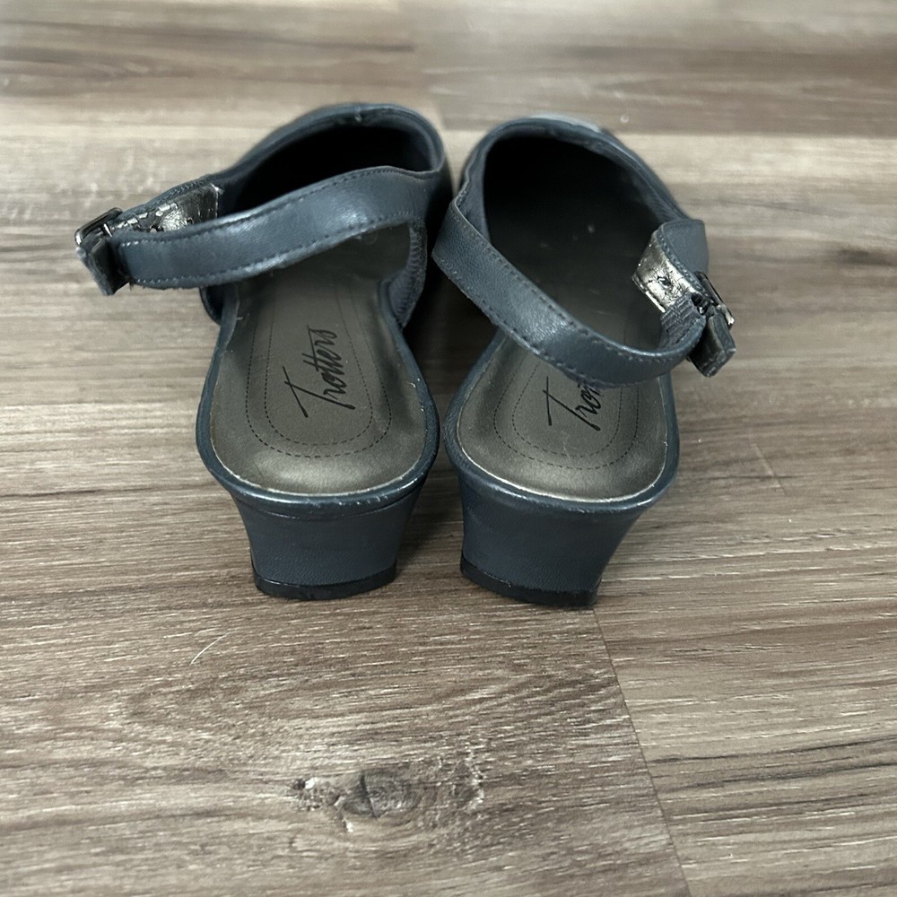 Style: Slingback US Shoe Size: 7 Brand: Trotters Department: Women Type: Heel Upper Material: Leather Heel Style: Kitten Toe Shape: Square Toe Color: Blue