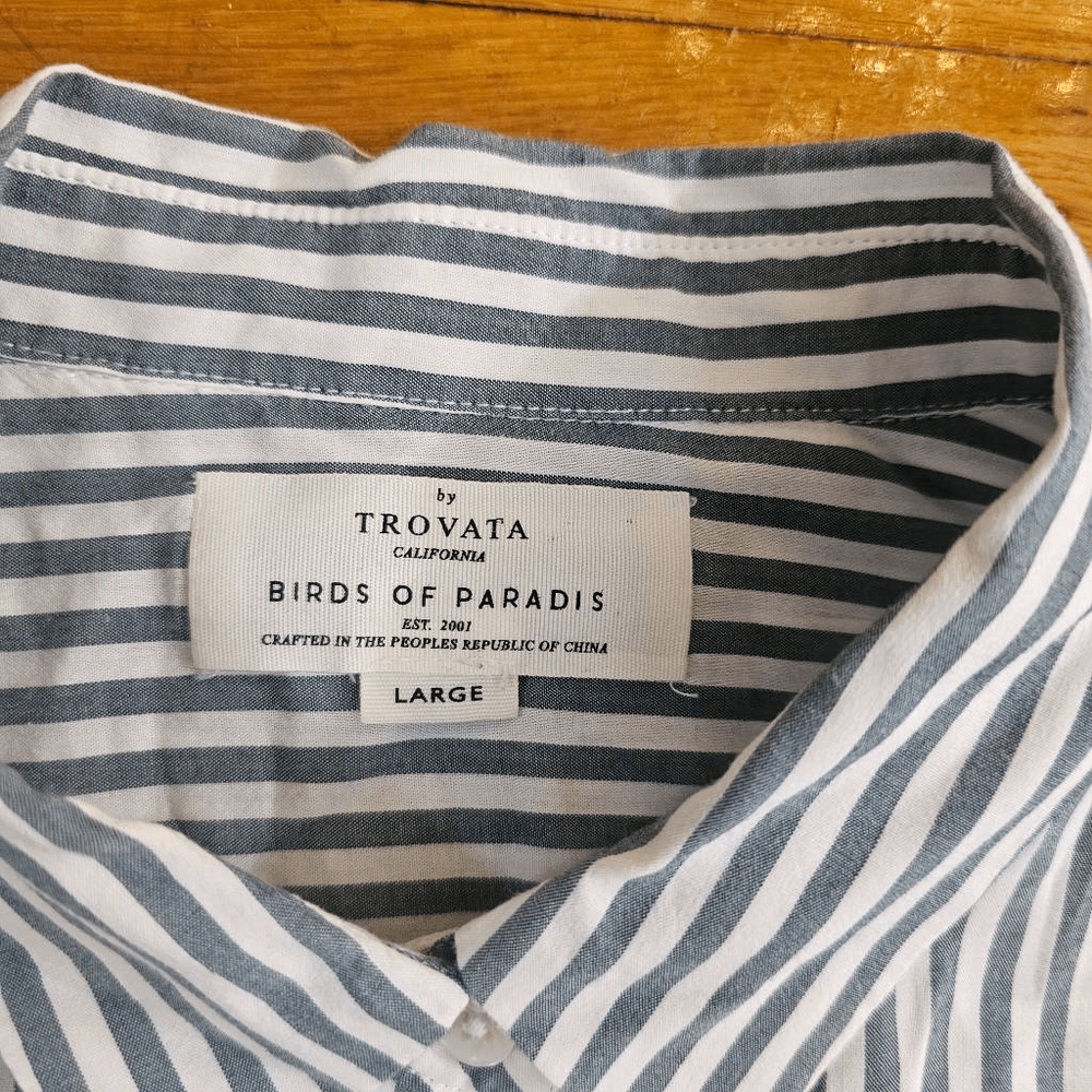 Country of Origin: Vietnam Sleeve Length: Long Sleeve Brand: Birds of Paradis Exterior Color: Multicolor Size: L Theme: Bird Type: Button-Up Color: Multicolor Department: Women Size Type: Regular Pattern: Striped