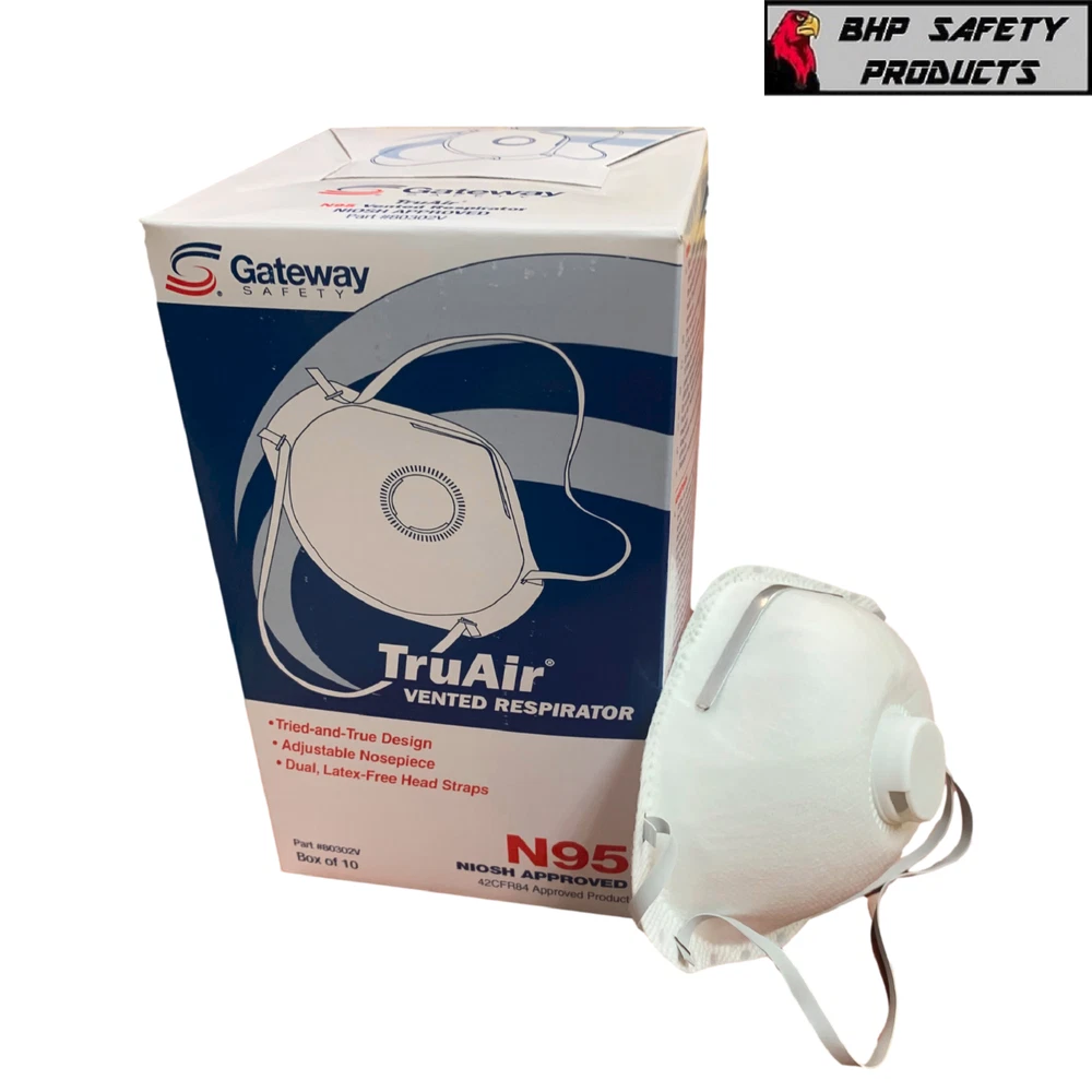 <div style="text-align:center"><img src="http://ti2.auctiva.com/sw/java.gif" border="0"><br><table align="center"><tr><td><a style="text-decoration:none" href="http://emporium.auctiva.com/calhoun1" target="_blank"><img src="http://ti2.auctiva.com/sw/browse2.gif" border="0"></a></td><td height="21px" valign="middle" align="center"><font face="arial" size="2"><b><a href="http://emporium.auctiva.com/calhoun1" target="_blank">calhoun1</a> Store</b></font></td></tr></table></div> <img src="http://ti2.auctiva.com/web/aswCredit.gif" border="0"><br><a href="http://www.auctiva.com/?how=scLnk2" target="_blank"><img src="http://ti2.auctiva.com/images/sc1line2.gif" border="0"></a> TruAir ® N95 TruAir’s tried-and-true, traditional design is widely accepted, helping increase compliance, while answering the call for cost-effective disposable respiratory protection. NIOSH approved N95 Protection; 95% filtration against aerosols free of oils. Large, molded shell helps to reduce breathing resistance, minimizing end-user fatigue. Adjustable metal nosepiece provides a safe, secure fit. Non-latex, elastic head straps. YOUR 100% SATISFACTION IS TOP PRIORITY! BHP SAFETY PRODUCTS main motivation is for our customers to be 100% satisfied with their purchase. If any consumer has something unsatisfactory with their product or transaction, please contact us immediately and we will do everything necessary to correct the problem and guarantee our promise. **TIME OF DELIVERY** BHP SAFETY PRODUCTS processes and ships orders Monday thru Friday 8:00AM – 5:00PM EST with the exception of National Holidays. We currently ship 93.8% of our orders the same day they are received and 99.6% within 24 hours. **WARRANTIES** We guarantee all of our products to be new and free from all manufacture imperfections. Factory defective items may be returned within 30 days of receipt. At which time a replacement will be sent at our expense or a complete refund of the transaction. **PAYMENT** We accept only PayPal **FEEDBACK** O ur goal is to earn a 5 star rating from every business transaction. When you receive your product, please take a moment and post us a positive feedback. When your shipment leaves our warehouse, we will automatically post you a positive feedback! THANK YOU FOR SHOPPING WITH US!
