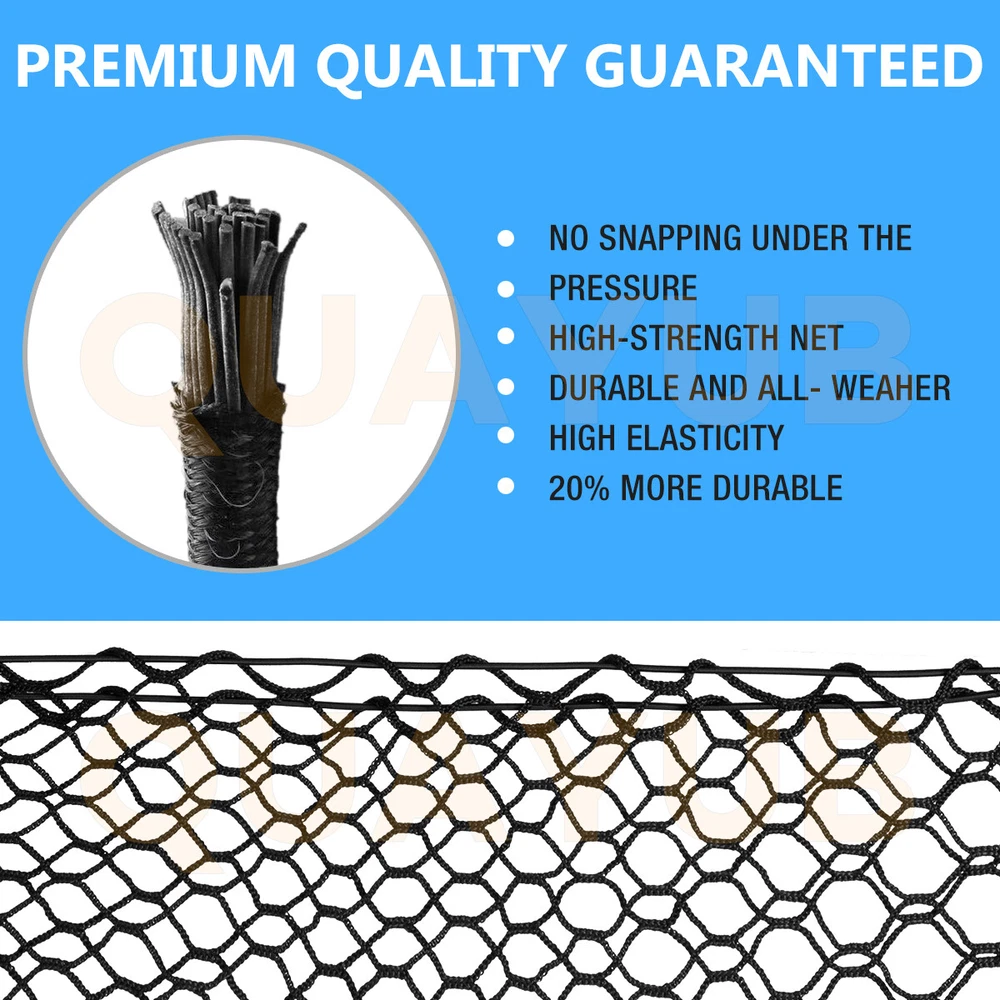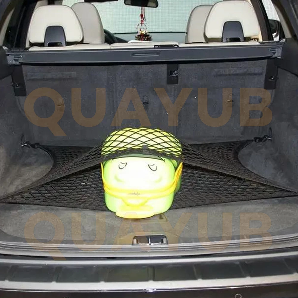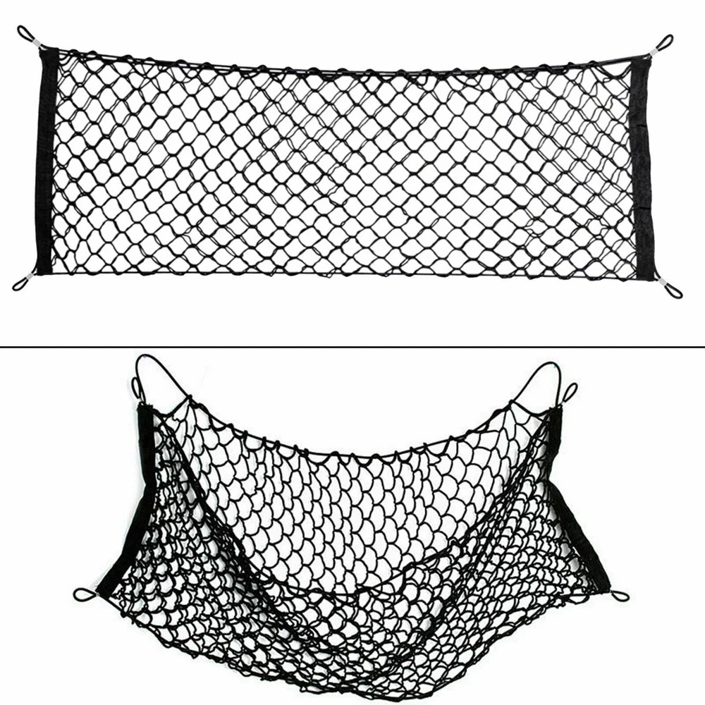 Description: 1. Unique shape, simple style, easy to install. 2. Smooth elastic net, strong scalability, it won’t be dropping for lack of resilience. 3. Use the Hook contact the Fixed point(Your Rear Trunk Need Have The Fixed Point) 4. Actual Size: 105cm (43.30") x 60cm (23.62") Notice: Before Purchase Check Your Rear Trunk Have Attachment Points.(as picture show) The days of groceries rolling around on the drive home are over. Custom-crafted for the cargo area, this durable elastic-mesh net has a floor-style design That holds items upright and in place. It attaches in seconds to mounting points in the cargo area and folds flat when not in use. Great storage solution to help you driving be organize and clutter-free! It’s Stretchable to Fit the Span the Width of The Pickup Bed or Wherever It Is Needed. The Truck Net Stretches Around Your Stuff and You Can Cram Even More Things in It Than Ever Before Package Includes: 1 x Fixed Cargo Double Elastic Net Bag