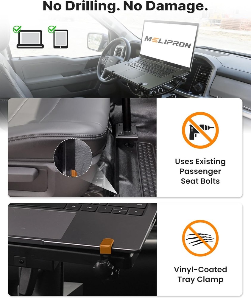 Truck Laptop Mount for 2012-2026 Ram 1500-5500 Vehicle Laptop Stand Mobile Work MELIPRON Truck Laptop Mount Fit for 2012-2023 Ram 1500-5500 , No-Drilling Vehicle Laptop Holder for in-Truck Mobile Work DESCRIPTION ✴️ No-drill Vehicle-Specific: Compatible with 2012-2023 Ram 2500-5500, 2012-2018 Ram 1500, 2019-2023 Ram 1500 Classic. Installs using existing passenger seat bolts—no drilling, no permanent modification. Patented design. ✴️ Three-Point Support Base for Maximum Stability: Heavy duty steel base anchors directly to the seat rail bolts, distributing load to prevent wobble. Vehicle laptop mount is ideal for typing, dispatching, and diagnostics—even on uneven roads or long shifts. ✴️ Fully Adjustable for Comfort & Safe Viewing: Laptop truck mount adjusts in height (11.9”–20”), with tilt and 360° rotation. Four locking joints allow precise positioning for different seat heights and driving positions—maintains full driver visibility. ✴️ Heavy-Duty Construction for Daily Work: Constructed with aircraft-grade aluminum and reinforced steel for high-frequency, all-day use. This truck laptop holder is designed to withstand vibration, heat, and long-term daily operation. ✴️ Integrated Cooling & Device Protection: The truck laptop holder includes dual USB-powered cooling fans to reduce laptop heat during long sessions. Five vinyl-coated tray clamps secure devices without scratching—fits laptops up to 17” laptops & most tablets. MELIPRON Truck Laptop Mount Fit for 19-26 Ram 1500 , No-Drilling Vehicle Laptop Stand for Mobile Work DESCRIPTION ✴️ Custom Fit for RAM Trucks: Melipron truck laptop mount is compatible with 2019-2025 Ram 1500. No drilling required, as it connects directly to the passenger seat bolts. Patent Certification. ✴️ Three-Point Support Base for Maximum Stability: Heavy duty steel base anchors directly to the seat rail bolts, distributing load to prevent wobble. Vehicle laptop mount is ideal for typing, dispatching, and diagnostics—even on uneven roads or long shifts. ✴️ Fully Adjustable for Comfort & Safe Viewing: Laptop truck mount adjusts in height (11.9”–20”), with tilt and 360° rotation. Four locking joints allow precise positioning for different seat heights and driving positions—maintains full driver visibility. ✴️ Heavy-Duty Construction for Daily Work: Constructed with aircraft-grade aluminum and reinforced steel for high-frequency, all-day use. This truck laptop holder is designed to withstand vibration, heat, and long-term daily operation. ✴️ Integrated Cooling & Device Protection: The truck laptop holder includes dual USB-powered cooling fans to reduce laptop heat during long sessions. Five vinyl-coated tray clamps secure devices without scratching—fits laptops up to 17” laptops & most tablets. SHIPPING ABOUT US Return & Warranty Leave feedback Contact us SHIPPING DELIVERY DAYS: 3-7 BUSINESS DAYS 3 BUSINESS DAYS SHIPPING OUT SHIP FROM CA & TX & NJ & GA & NC &OR WAREHOUSE California Warehouse: City of Industry, CA Texas Warehouse : Houston, TX New Jersey Warehouse : Perth Amboy, NJ New York State Warehouse: Perth Amboy, NJ Georgia Warehouse: Austell,GA North Carolina Warehouse: Grove NC Oregon Warehouse: AIRPORT WAY Portland,OR ABOUT US Welcome to our eBay store. As a leading and emerging company in manufacturer and exporting business, we are specialized in AUTO PARTS, Business and Industrial Products, Sporting Goods, Home and Garden products for more than 10 years. We believe that it is our vision and mission to provide innovative products with best service and competitive price to satisfy you. Our goal is to make sure that you can find exactly what you are looking for and make it easy for you to place your orders. Return & Warranty 1. 30 Days Free Returns, please notify us within 30 days after you've received your purchased item. 2. All return requests must be submitted through your eBay account. 3. Return shipping shall be the responsibility of the buyer. We pay the shipping when it is our fault. 4. Items to be returned must be in resalable condition. 5. All returns are for refund ONLY. No exchange accepted. Leave feedback If you are not satisfied for any reasons, please do not be so quick to leave negative/neutral feedback. We work hard to make sure EVERY CUSTOMER 100% SATISFIED and resolve any problems for you and always leave positive feedback to all our customers. If you are satisfied with the product you received, please kindly leave us a positive feedback and 5 scores DSR. Thanks! Contact us Email Customer Support: 9:00am-2:00am PST Sunday-Friday All emails will be responded to within 12-24 hours Features Ergonomic MPN Does Not Apply Modified Item No Assembly Status Assembly Required Compatible Product Line For Ram Model C1237V07/C1237V17 Compatible Laptop Size 17 in Laptop Compatible Brand Universal Brand MELIPRON Style Modern Color Black Type Truck Laptop Mount Compatible Model Laptops, Tablets Material Aluminum Manufacturer Warranty 5 Years Compatible Phone Models Laptop, Tablet Weight Capacity Maximum 5 Kilograms Water Resistance Level Waterproof Compatible with Vehicle Type Truck