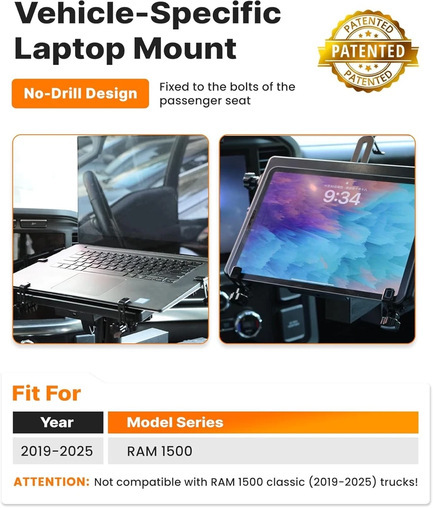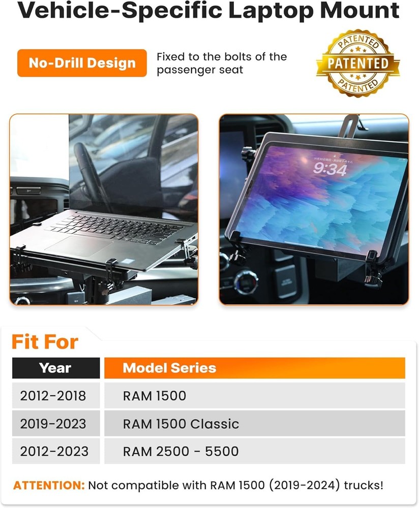 Truck Laptop Mount for 2012-2026 Ram 1500-5500 Vehicle Laptop Stand Mobile Work
