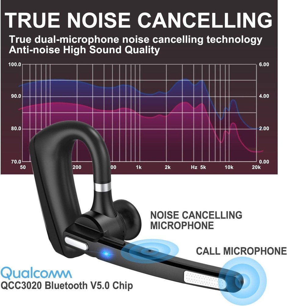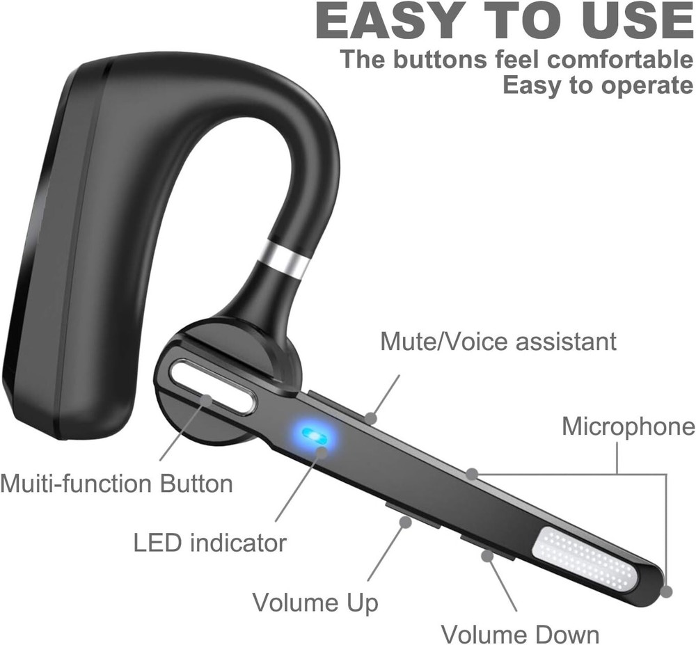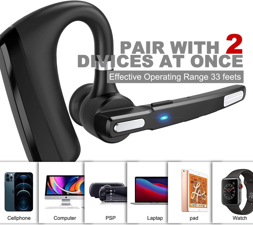 【Dual-Mic Noise Cancelling & Clear Sound】The wireless headset Combines 2 built-in HD microphones and advanced CVC8.0 noise reduction technology which can eliminate disruptive background noise without missing any single conversation details even in noisy place. Allows you to enjoy high quality music and clear phone calls wherever. 【Freely Angle & Comfortable Wearing】180° rotatable ear-hook and 270° flexible boom mic can be adjusted and rotated make it friendly to fit a wide range of right/left ear shapes. Weights only 0.46 oz, No more burden on ears even after wearing it for a long time. The eartip come in 3 sizes(Small Medium and Large) that conforms to the shape of either ear for all day stable fit. 【Bluetooth 5.0】Provides fast and stable pairing with any IOS and Android smart phones, tablets, laptops, MP3 players from up to 33' away. It can pair easily with any two Bluetooth devices at once. With up to 24 hours of continuous calls and up to 13.5 days in standby mode, this Bluetooth earpiece lets you make reliable wireless calls throughout the day on a single 2.5 hours quick charge. 【Hands-Free Call & Mute Function】Quickly activate Siri or Google Assistant to make hands free calls. Easy-to-reach buttons let you enjoy real hands-free of wireless for calling.Voice connection status,Equipped with a mute function, press the wireless earbuds power button twice during the call, the other party will not hear your voice, and privacy can be protected under special circumstances. (This function does not support computers.) 【SUPERIOR BATTERY SUPPLY 】150mAh battery capacity, up to 320 hours super long standby time, up to 24 hours of calling, up to 25 hours of playing time, which overcome the difficulty of battery shortage during the business trip, driving, meeting, traveling. We offer 12-month warranty ,If for whatever reason you're not satisfied with your product or experience, simply contact us, we'll get back to you within 24 hours. We 'll try our best effort towards your satisfaction.
