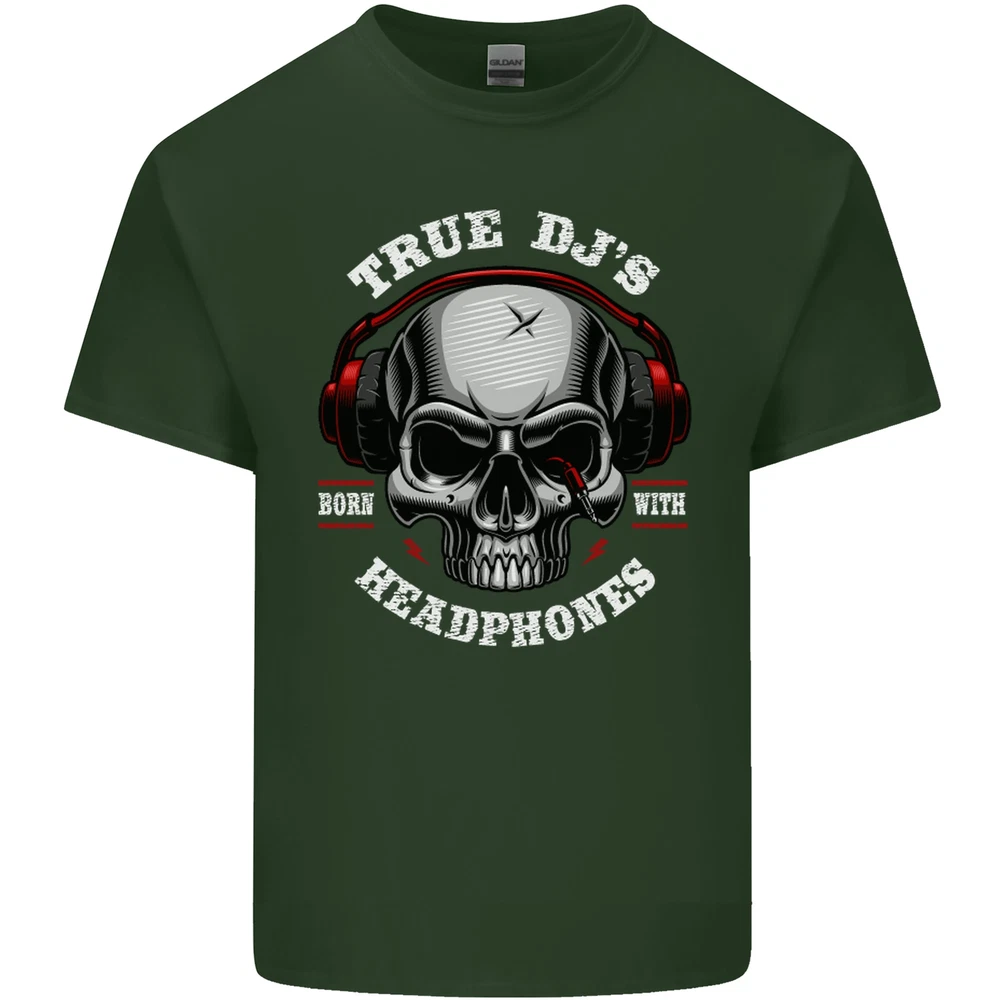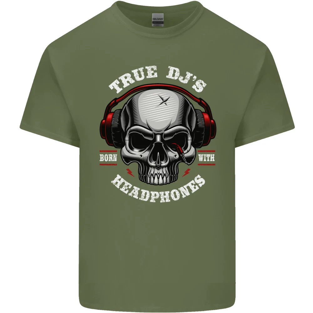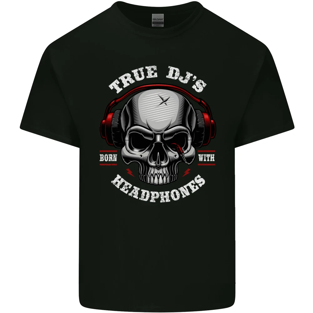 True DJs Are Born With Headphones DJing Mens Cotton T-Shirt Tee Top