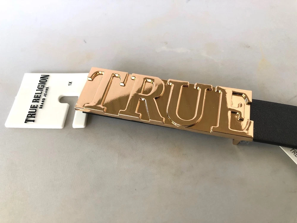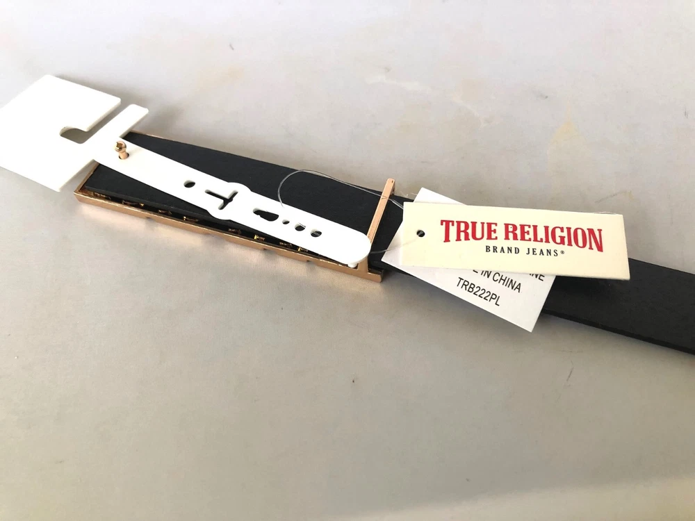 True Religion Belt TRB222PL Womens Black belt Size: 1X: From buckle to 1st hole - 39"; to last hole - 45" 2X: From buckle to 1st hole - 42.5"; to last hole - 48" Width - 30mm or 1-1/4"