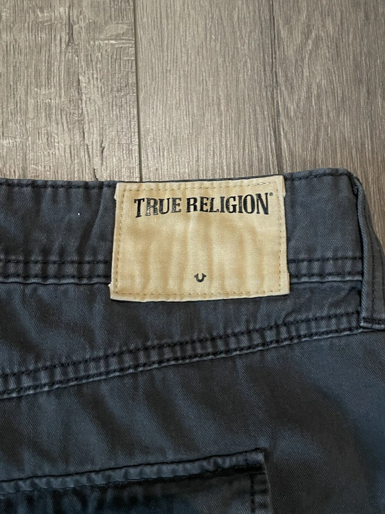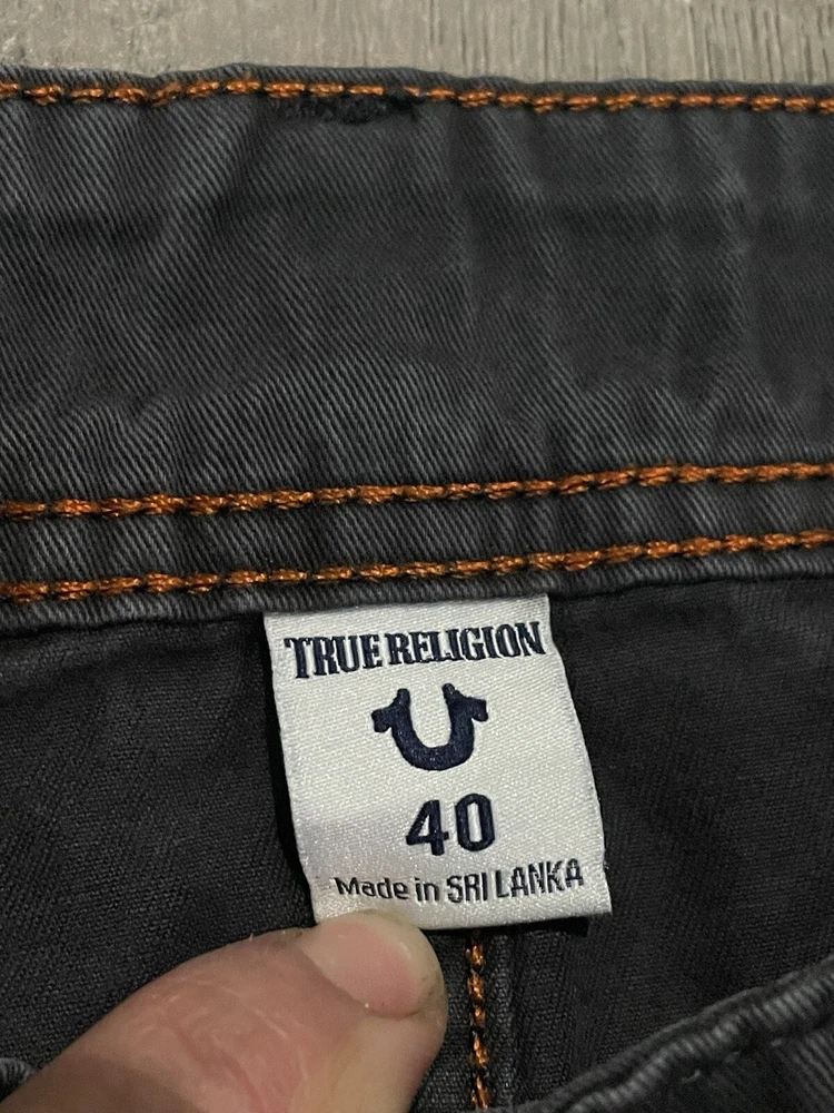 Country/Region of Manufacture: Sri Lanka Season: Winter, Spring, Summer, Fall Color: Dark Grey Brand: True Religion Fit: Relaxed Front Type: Flat Front Theme: Hip Hop Pocket Type: Cargo Pocket, Slash Pocket Type: Pants Size: 40 Size Type: Regular Inseam: 30 in Rise: Mid (10-12 in) Closure: Zip, Button Pattern: Solid Department: Men Garment Care: Machine Washable Leg Style: Tapered Accents: Logo, Zipper, Button Material: Cotton Fabric Type: Canvas Occasion: Casual, Travel, Workwear, Party/Cocktail Features: Pockets, Comfort, Easy Care Waist Size: 40 in Style: Cargo
