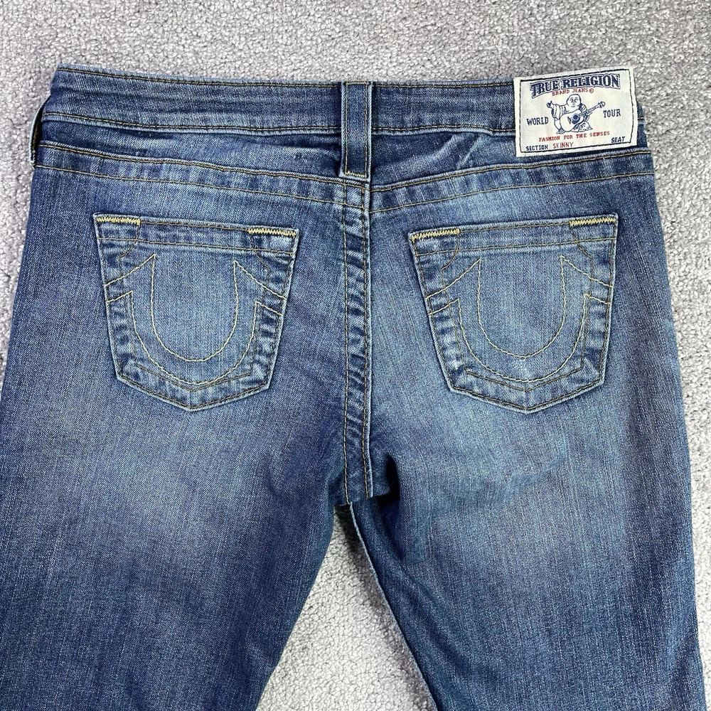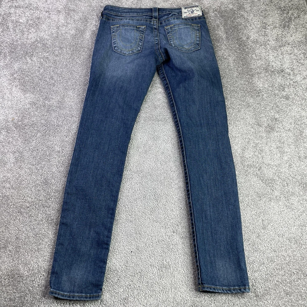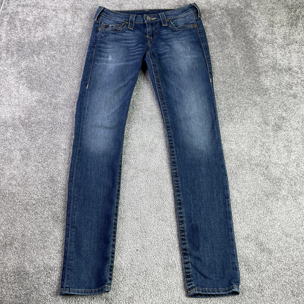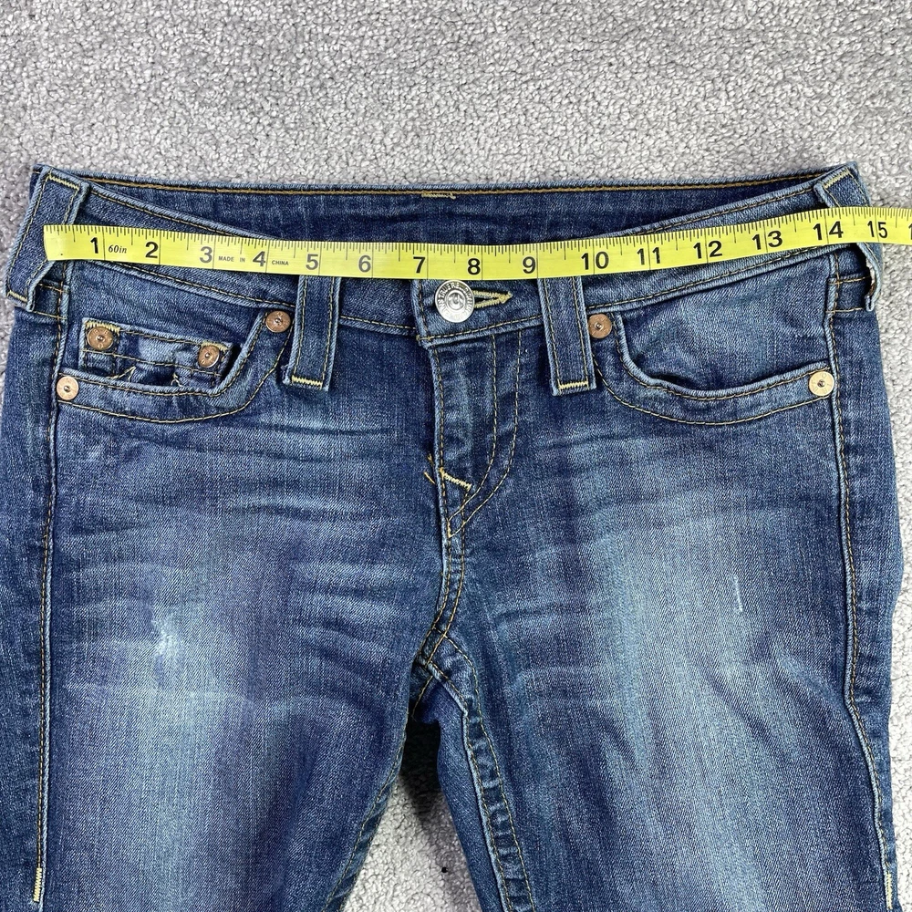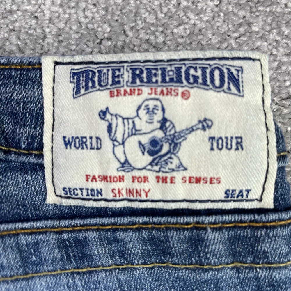 Fabric Type: Denim Product Line: True Religion World Tour Type: Jeans Size: 27 Personalize: No Closure: Zip Handmade: No Department: Women Garment Care: Machine Washable Fabric Wash: Dark Features: Distressed, Pockets, Stretch Pocket Type: 5-Pocket Design Model: Trur Religion Skinny Size Type: Regular Seller Notes: “In excellent, pre-owned condition with no flaws to note.” Fit: Regular Inseam: 31.5 in Color: Blue Theme: 90s, Bohemian, City, College, Festival, Grunge, Hipster, Preppy Brand: True Religion Vintage: No Material: Cotton Blend Season: Fall, Spring, Summer, Winter Accents: Logo Country/Region of Manufacture: Mexico Pattern: Solid Waist Size: 27 in Rise: Low (6.5-8.5 in) Style: Skinny