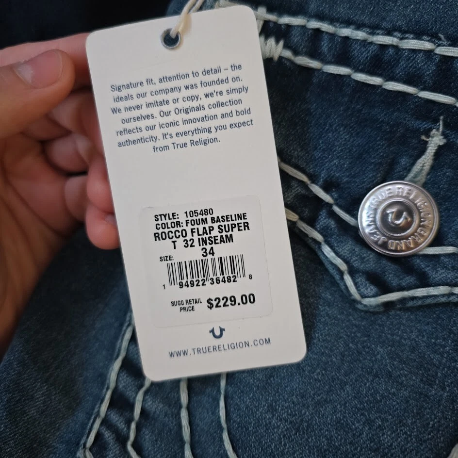 True Religion Men's Geno Slim Fit Straight Jeans, Size 34