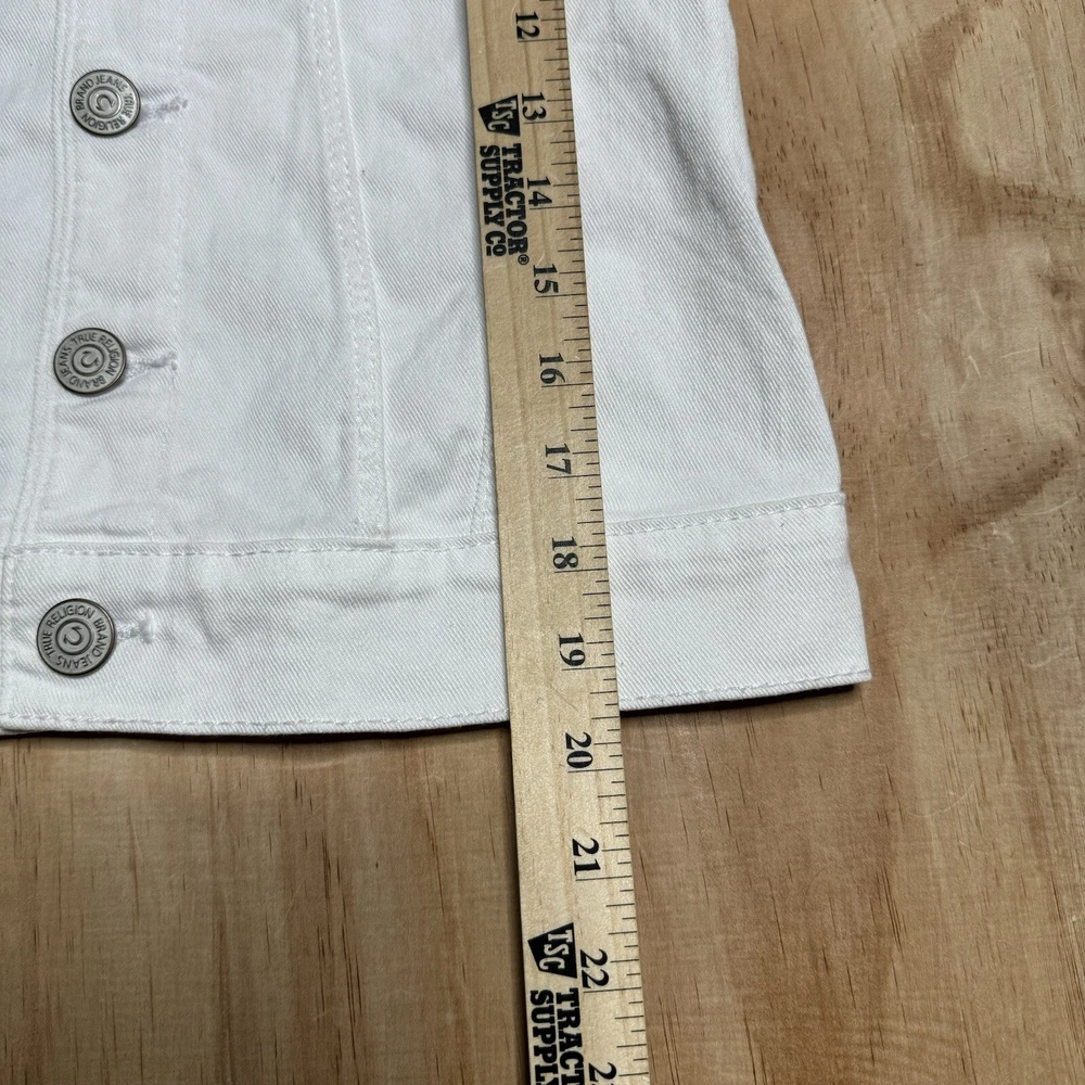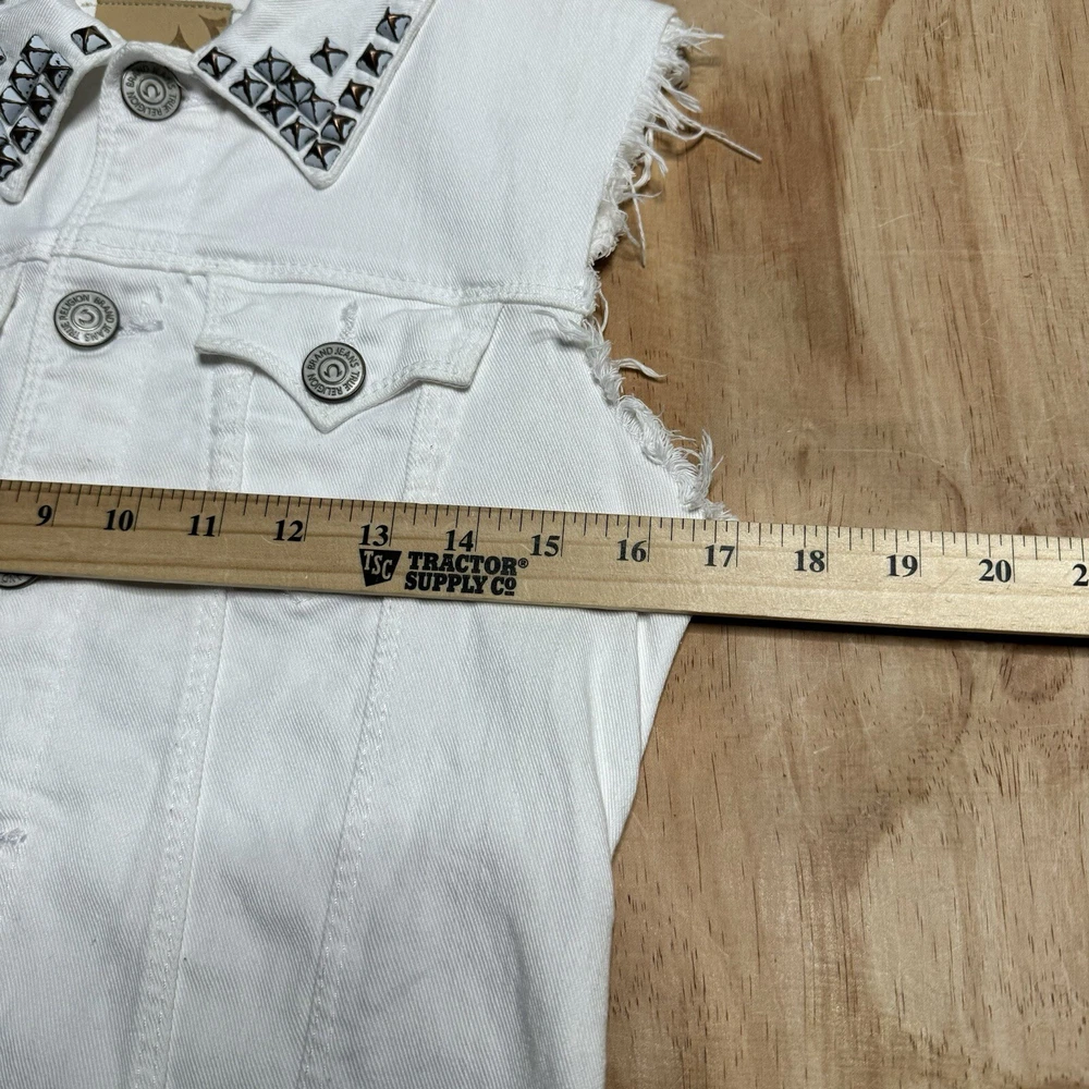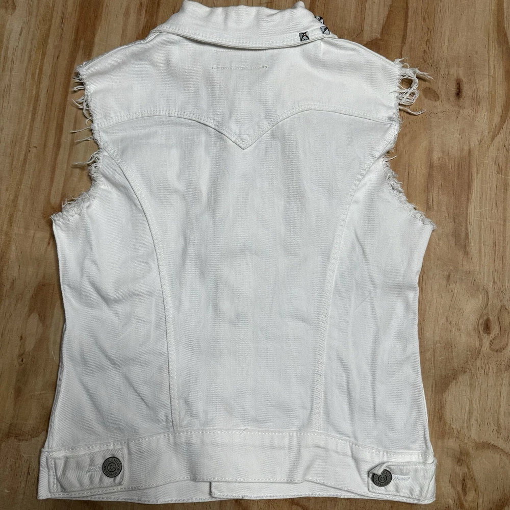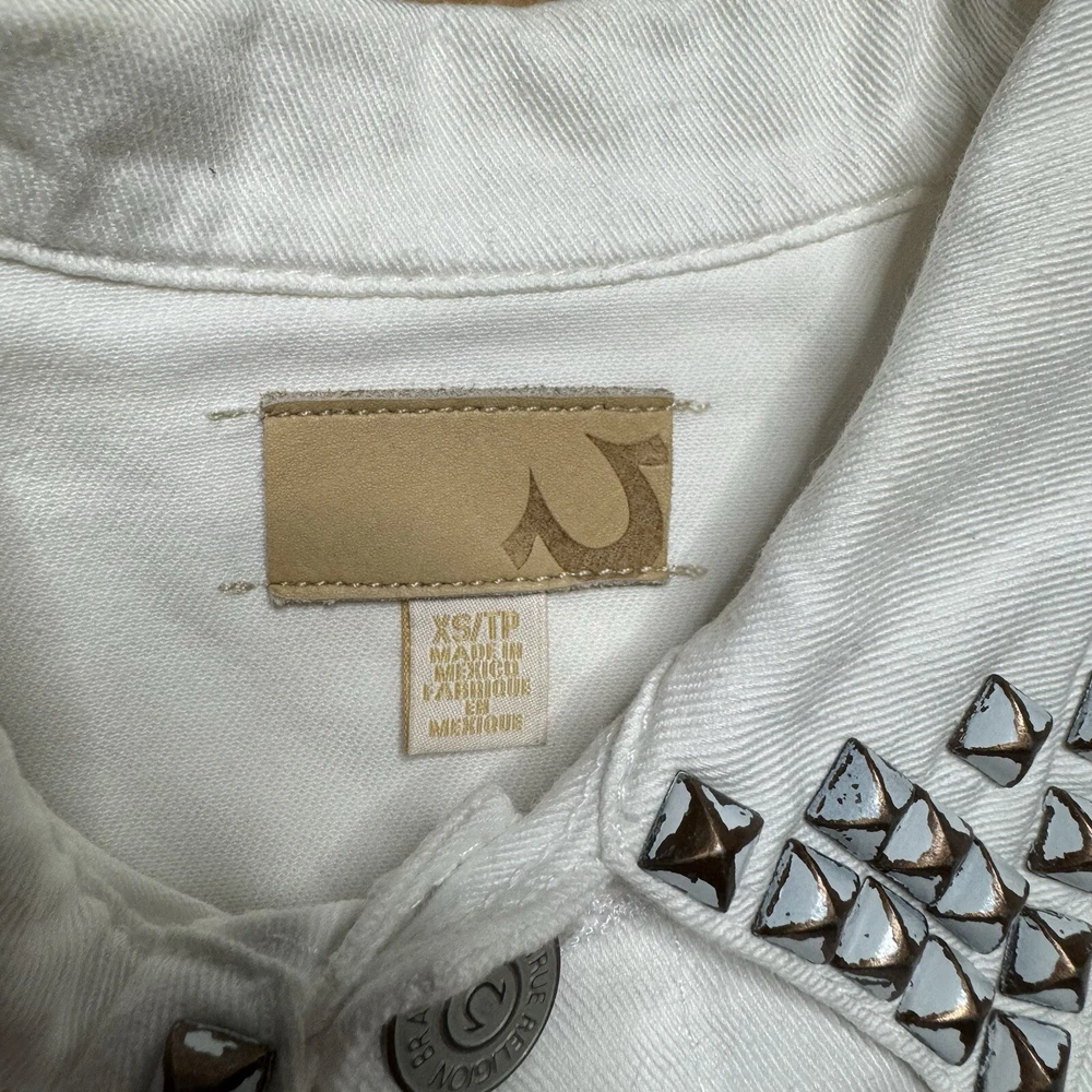True Religion Women XS White Trucker Denim Jean Vest Bling Goth Studded Collar