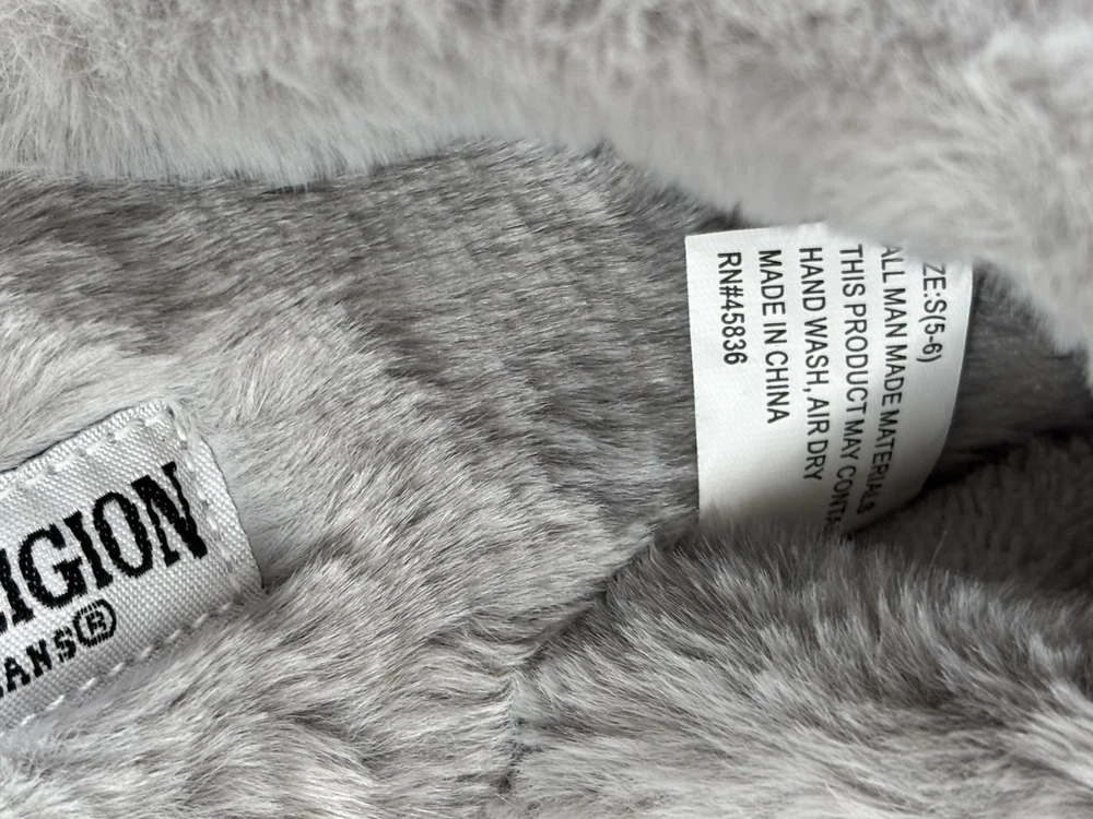 True Religion slippers women’s small gray faux fur sparkle horse shoe new