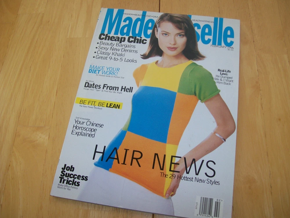 Up for Auction, (Original) Mademoiselle Magazine from February of 1996.. . ***Rare, original Mademoiselle magazine with features on 90's Fashion, including hairstyles, swimsuits & denim looks and many others....from my personal stash and has light wear on cover, inside is clean .. ***Shipping is ***FREE*** w/ USPS Ground Advantage with tracking included..... Feel free to email me w/ any questions!!!