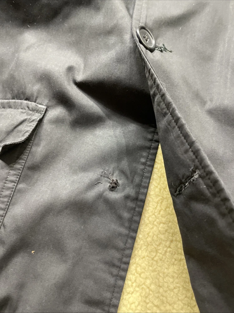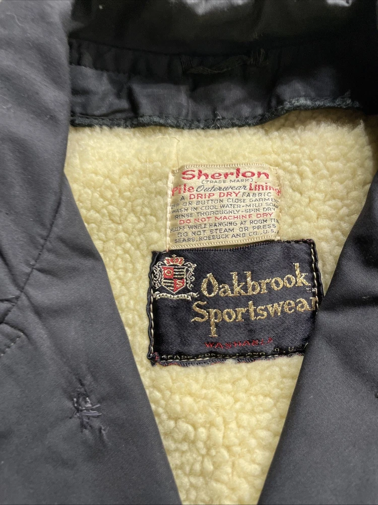 Please refer to pictures fir details measurements and flaws The True Vintage Oakbrook Sportswear Pea Coat is a stylish and classic piece from the 1960s, featuring a sherlon lining for added warmth. This XL button-down jacket in black is perfect for men looking for a vintage touch in their outerwear collection. With its unique style, this coat combines retro charm with modern functionality, making it a versatile and timeless addition to any wardrobe