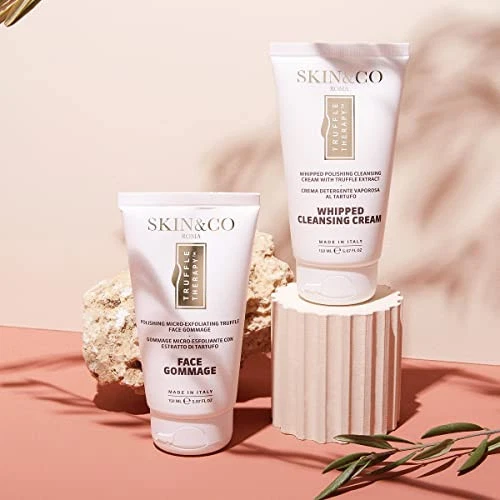 Product Description Kiss dry, dull, and flaky skin goodbye! Truffle Therapy Whipped Cleansing Cream is a highly concentrated -crème cleanser formulated to deeply cleanse skin, remove makeup, dirt and impurities, effectively keeping pores free and clear from congestion and blemishes while soothing and calming sensitivity-prone complexions. Formulated with pure Black Winter Truffle Extract, Sweet Almond Oil, Mallow Leaf, and Chamomile, this gentle cleanser delivers intense hydration, nourishing moisture, while improving skin’s resilience and tone. Complete with essential fatty acids, skin’s natural moisture barrier is restored to maintain a supple and radiant complexion. A delicate exfoliating cream, with a rich texture and soothing fragrance, Truffle Therapy Face Gommage is a lush formula combining the best of the iconic Mediterranean lifestyle and the luxury Italian spa experience. A beauty cabinet staple, the Truffle Therapy Face Gommage features Sweet Almond Oil, gentle Apricot , and our unique and exclusive Black Winter Truffle Extract, which has a high concentration of Superoxide Dismutase – a powerful free-radical scavenger that reduces the signs of aging. Gently buff away and erase dull, lackluster skin revealing a more luminous and healthy complexion. Brand Story offers a variety of Natural Skincare Products, Anti-Aging Serums, Potent Moisturizers, Delicious Shower Gels, Natural and Effective Body Lotions.