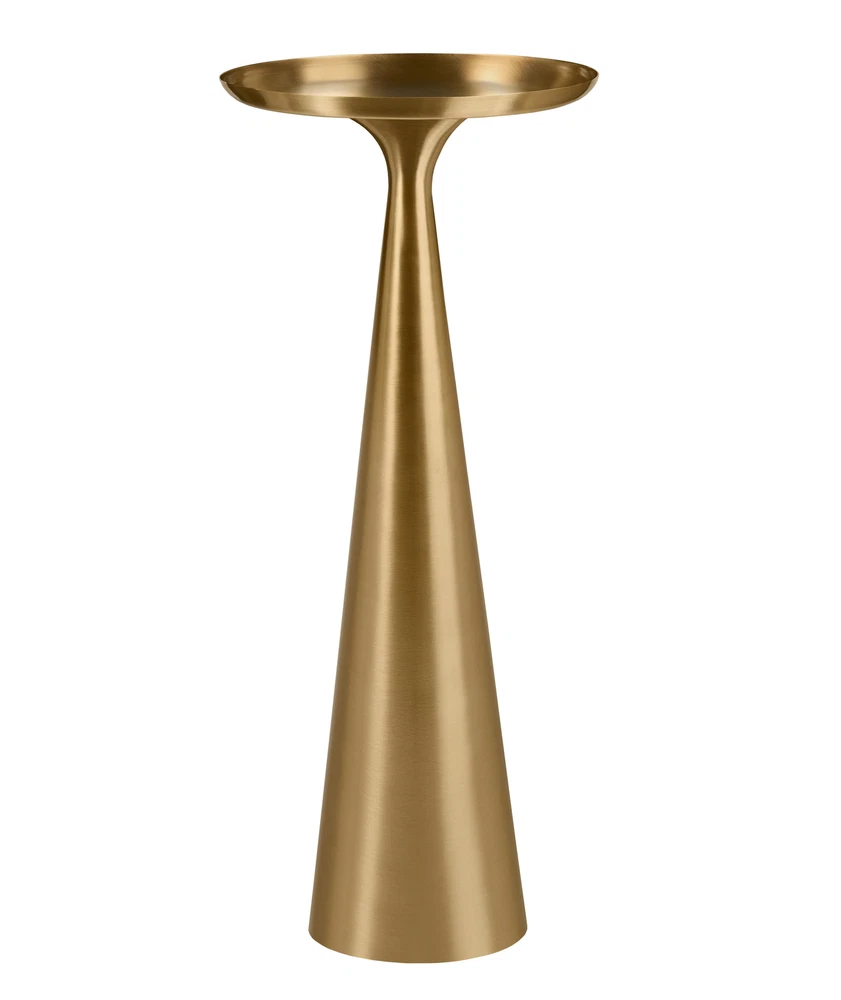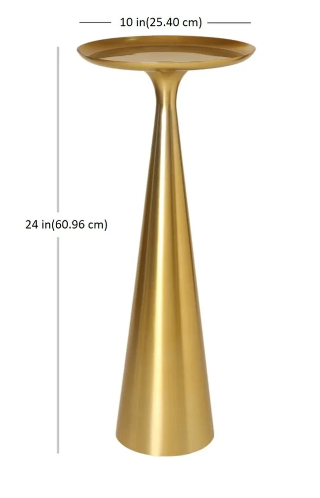 Transform your living space with the Better Homes & Gardens Truitt Drink Table, a perfect blend of style and functionality. Standing at 24 inches tall, this chic table provides an elegant platform for displaying a beautiful candle, a vibrant succulent, or your favorite beverage. Its sleek silhouette and modern design effortlessly complement any decor, making it a versatile addition to your home. Whether you choose to place it next to your couch for easy access during movie nights, use it to elevate your vanity area, or add a touch of charm to your entryway, the Truitt Drink Table enhances any space. Crafted with quality materials, it combines durability with a sophisticated aesthetic. Best of all, it arrives fully assembled, allowing you to effortlessly elevate your decor and enjoy your new statement piece right away! Dimensions : 10" W x 10" L x 24" H Available in Gold and Black Steel construction Aged Brass Finish No Assembly Required