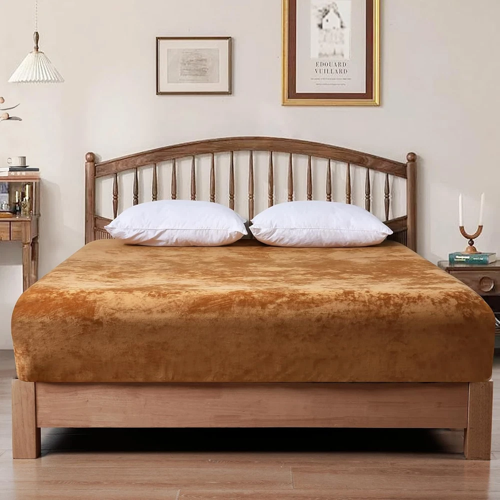 Chosen Velvet Fabric: The fitted sheet is made of 100% selected velvet fabric, fluffy, soft and skin-friendly, providing comfy and cozy sleeping experience for you and your family. Elegant Appearance: The velvet fabric with specail craftsmanship feature not only soft and uinform luster, but also amazing light and shadow effect in different light intensity and angle. Giving a luxurious allure for an impressive coordinating foundation with our premium velvet fitted sheet. Secure & Snug Fit: Measuring 80" by 60" with 15" deep pocket, our fitted sheet is designed for all queen sized bed mattress. With full and reinforced elastic band at backside, it will safely and securely cover your mattress. Easy Care: Machine wash separately in cold water, gentle cycle. Do not bleach. Tumble dry on low heat or lay flat to dry. Remove promptly. Warm iron as needed. No pilling, no shrink, no fade, no shed, labor tests show that the velvet fitted sheet keep its shape and stay brands new after 163+ wash cycles. Package Include: PHF Super Soft Velvet Fitted Sheet Queen(80" x 60" x15''), perfect for queen sized bed mattress. Product Description The video showcases the product in use. The video guides you through product setup. The video compares multiple products. The video shows the product being unpacked. Selected Velvet PHF fitted sheet is made of 100% selected velvet, sumptuously soft, fluffy and cozy, providing extreme comfort for sweet sleep. Due to a gentle textile process that ensures no shedding or pilling. 360° Extra Strong Elastic Each fitted sheet has full encased elastic band covered with self-fabric at the bottom, can fit your bed mattress snugly and safely without any shifting. 15 Inches Deep Pocket Our premium fitted sheet with deep pocket can stretches up to 15 inches, pull snugly over any mattress up to 15 inches effortlessly and simply, go neatly round the corners to stay in place. Easy to Use Its stretchy or elasticized edges make it a breeze to slip on and off, saving time and effort during bed making and changing linens. 1 Multiple Colors 2 Size Refrence PHF Luxurious & Cozy Fitted Sheet Material Truly Velvet Truly Velvet 100% Washed Cotton 100% Viscose Made from Bamboo Truly Velvet Size Twin/Full/Queen/King/CK Twin/Queen/King Twin/Full/Queen/King Twin/Queen/King Twin/Queen/King Color 10 Colors Available 6 Colors Available 12 Colors Available 11 Colors Available 5 Colors Available Price 28.99-37.99 25.99-32.99 21.99-27.99 25.99-35.99 26.99-33.99 Features Elegant Appearance, Soft, Warm Ultra Soft, Warm Cooling, Breathable Soft, Skin-friendly Soft, Skin-friendly Season Autumn,Winter Autumn,Winter Spring, Summer All Season Fall Winter and Spring