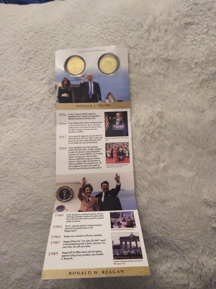 This commemorative coin features the faces of Donald Trump and Ronald Reagan, making it a must-have for any political enthusiast. The coin is a unique piece of historical memorabilia that captures the essence of American politics. It is a great addition to any collection, whether you are a fan of the Republican Party or simply appreciate the art of politics. The coin is a rare find and is perfect for those who love to collect political items. It is a tangible representation of the 2020 presidential campaign and the themes that defined it. The coin is a great way to remember the election and the impact it had on American politics. Add it to your collection today and own a piece of history.