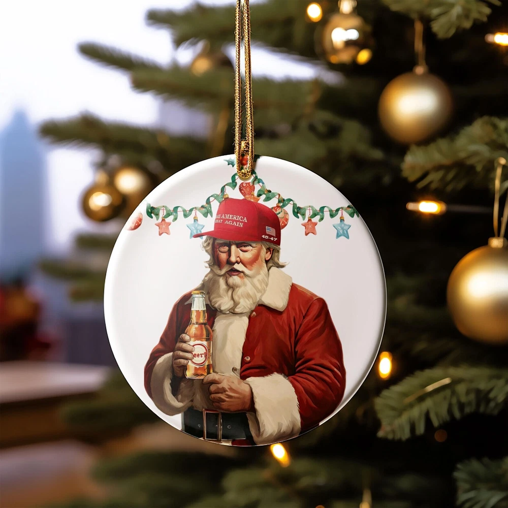 Trump Christmas Ornament President Trump 2024 Ornament Vintage Santa Claus Ornament Trump Maga Ornament Maga Santa Trump Ornament Material: Ceramic Color: White Shapes: Circle, star, heart and oval Can be printed on both sides Imprint full-color artwork, photos, or logos Hole for hanging string and hanging string included Printed in the USA