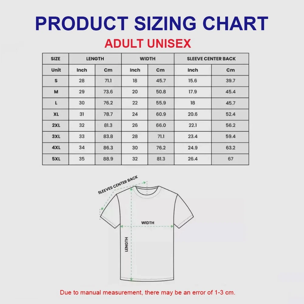 WELCOME TO OUR STORE! 100% MADE IN THE USA Available Shirt Colors: Black, White, Light/Royal/Navy Blue, Charcoal, Red, Grey, Maroon, Dark Heather, Pink, Sand, Green, Purple, Military Green, Ash Grey Print and Ship from the U.S. Gildan 5000 T-shirt (U.S. Sizes) Sizes: S, M, L, XL, 2XL, 3XL, 4XL, 5XL Material: 100% Heavy Cotton PLEASE LET US KNOW YOUR COLOR CHOICE!